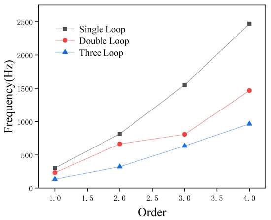 Given the limited space on marine installations, hydraulic piping systems cannot adopt the long, straight layout commonly used in oil and gas transmission scenarios. Instead, marine hydraulic systems typically employ a short-distance multi-loop configuration. However, altering the pipeline layout structure can affect its modal characteristics. To investigate the vibration characteristics of the piping system, this study first analyzes the relationship between its modal behavior and the number of pipeline loops. Using the finite element analysis software ANSYS Workbench, simulations were conducted to analyze the wet modal characteristics of single-loop, double-loop, and three-loop pipelines under the same flow rate. As shown in Figure 3, the results indicate that with an increase in the number of loops in the piping system, the first four orders of modal frequencies decrease and the higher the modal order, the greater the reduction. This finding provides favorable conditions for researching low-frequency vibrations in piping systems.