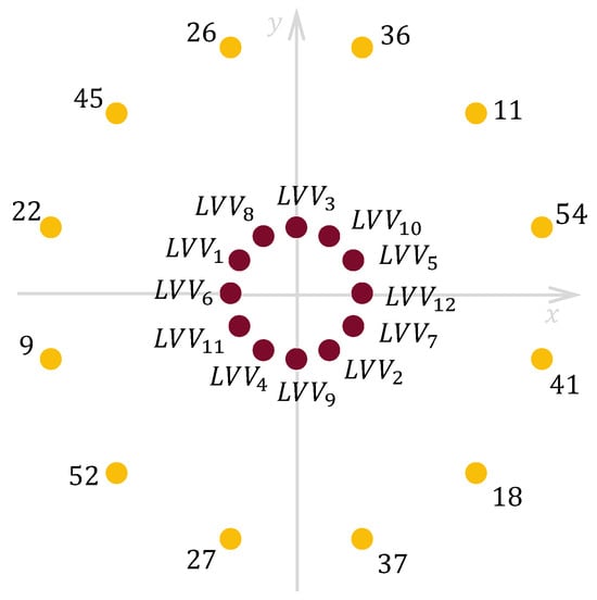 The CLVV-MPC employs, as active control actions, twelve tuples of adjacent in the main plane. The resulting voltage () of these tuples can be obtained according to (11):