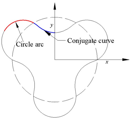 Therefore, for an arc-shaped rotor, once the parametric equation of its arc is known, the conjugate curve can be determined based on the coordinate transformation relationships.