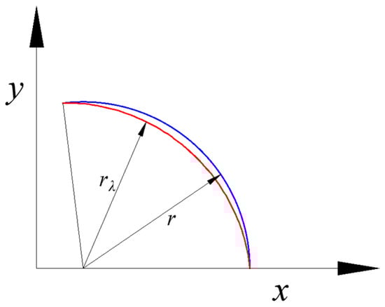 As shown in Figure 4, a comparison between a constant-radius arc and a variable-radius arc is illustrated. For the constant-radius arc, the radius remains unchanged throughout. In contrast, the corresponding variable-radius arc has a radius defined as: