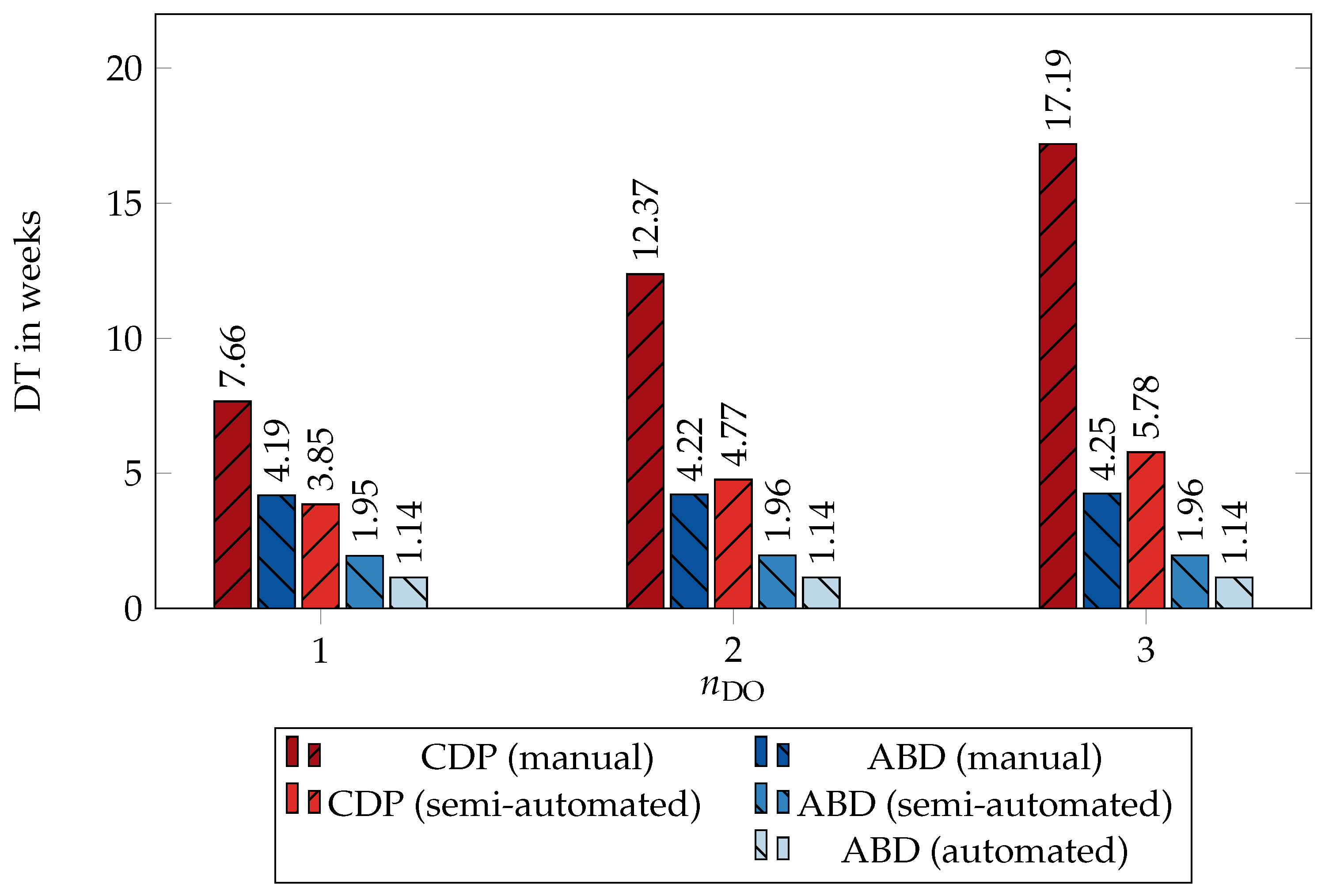 - DT, which most accurately quantifies the duration of the D’s tasks, including the availability check step (which is particularly relevant for comparison purposes with the other process described in this paper), but excluding the offering step, which is not considered as a design task in the framework of this paper.