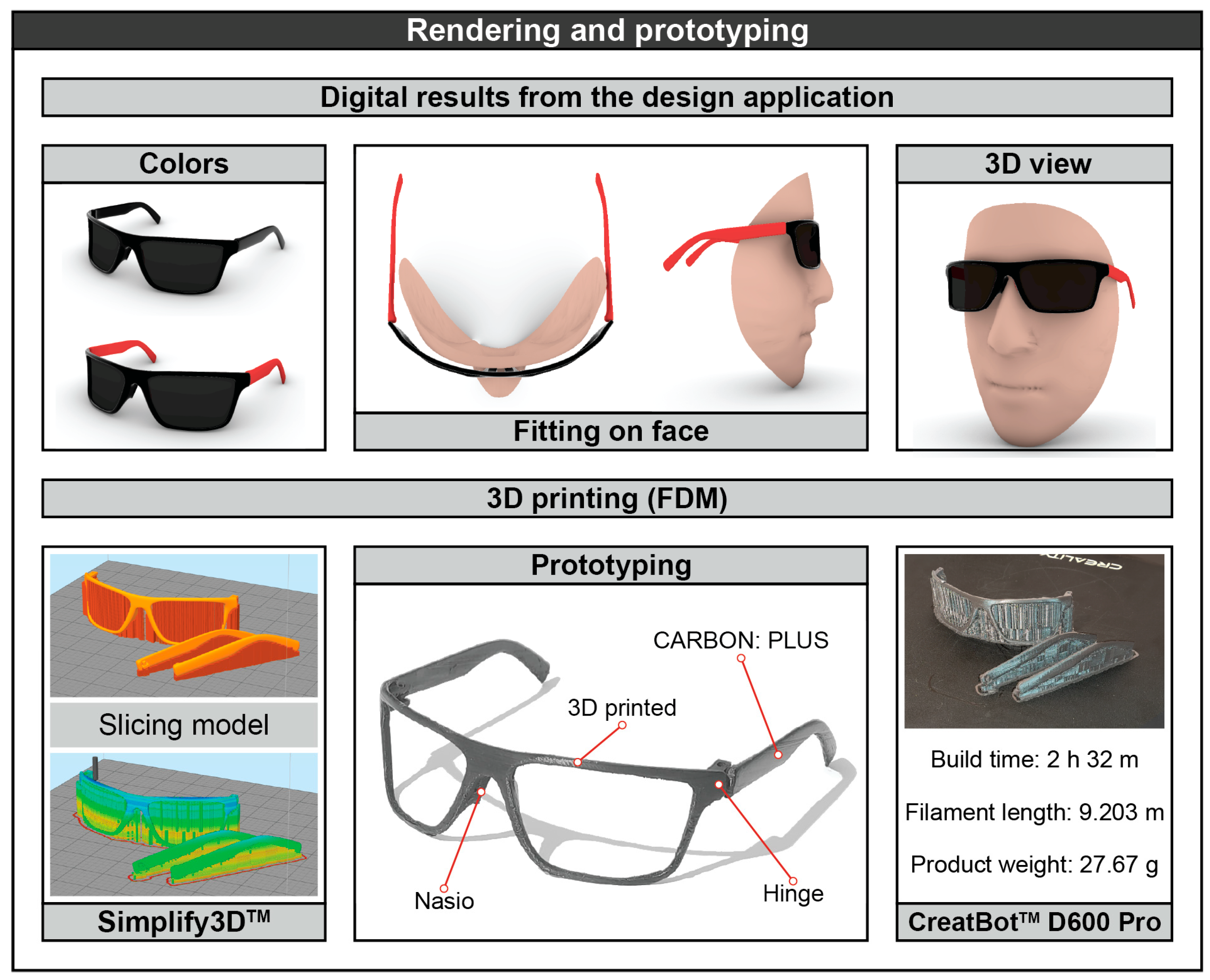 The design of the sunglasses geometry was carried out through Computational Design in Grasshopper 3D
