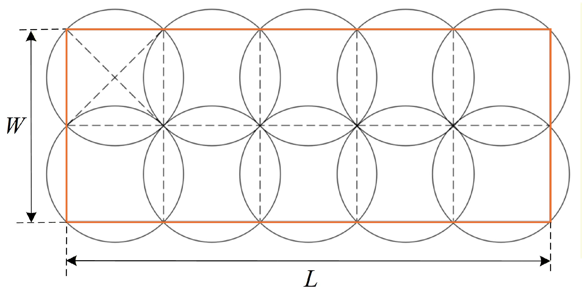 W denote the vehicle length and width, respectively. To ensure full lateral coverage, the radius