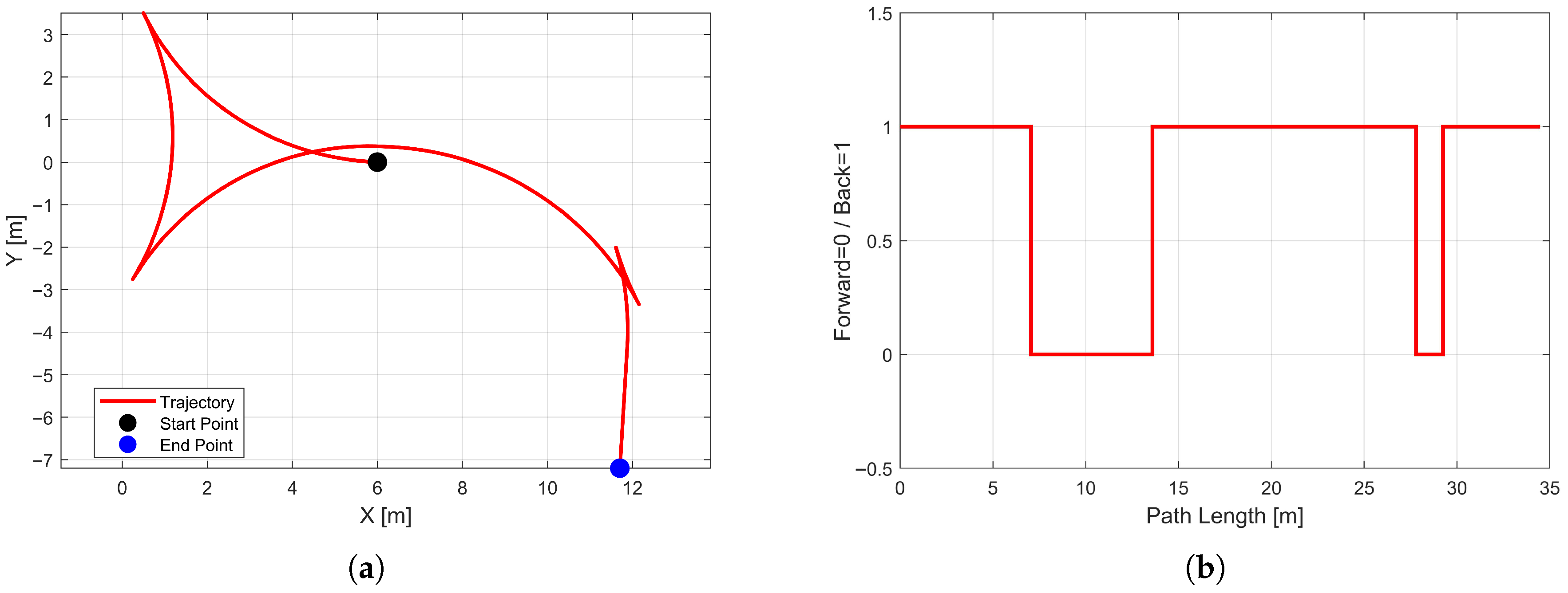 Figure 11b plots the driving direction along the path length. Within the path segment corresponding to the adjustment loop in