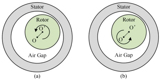 Schematic of mover eccentricity: (a) static eccentricity, (b) dynamic eccentricity.