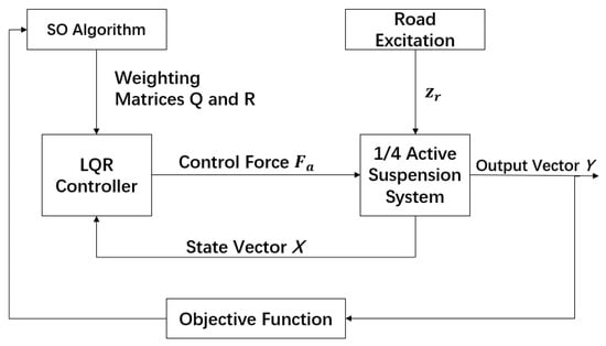 - Fan, Q.; Zhang, K.; Xu, L.; Gong, Y.; Chang, K. Optimized Design of Active Suspension LQR Controller Based on Snake Optimizer. Sci. Technol. Eng. 2024, 24, 3852–3860. [Google Scholar]