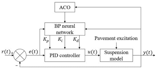 - An, X.; Zhao, J.; Wang, Y.; Zhi, J.; Wang, L. Research on BP-PID Active Suspension Control Strategy Based on Ant Colony Optimization Algorithm. Mach. Des. Manuf. Eng. 2025, 54, 87–93. [Google Scholar]