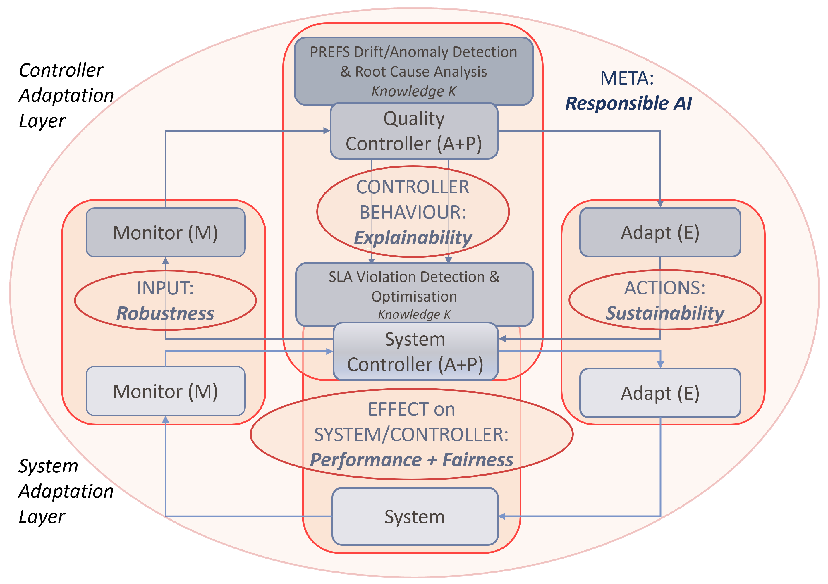 13] and used the review papers covering their respective focal concern to form a coherent conceptual framework here that provides a comprehensive set of metrics to allow this two-layered controller loop to be realised. While different controller construction mechanisms are covered, due to the popularity and relevance of reinforcement learning and control theory as established mechanisms, these are specifically singled out to provide insights into the potential implementation of the proposed results.