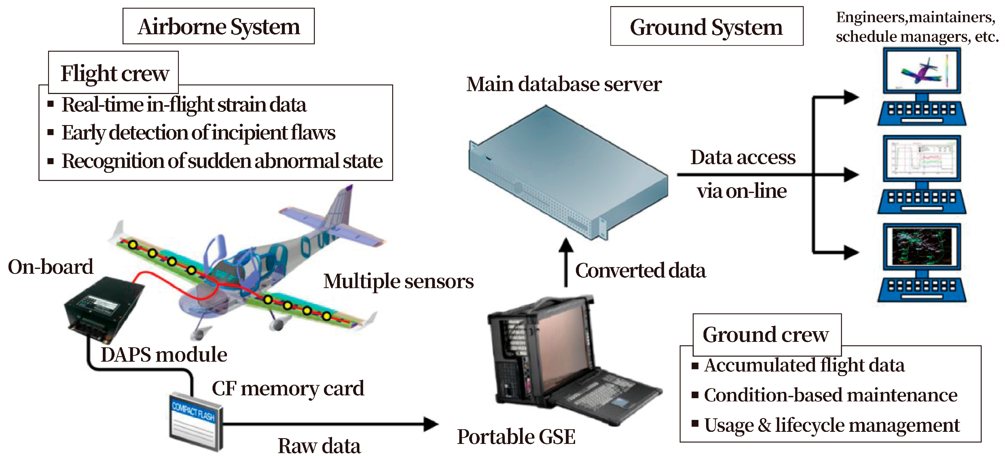 Figure 7 illustrates the conceptual diagram of the HUMS based on FBG for in-flight strain measurement.