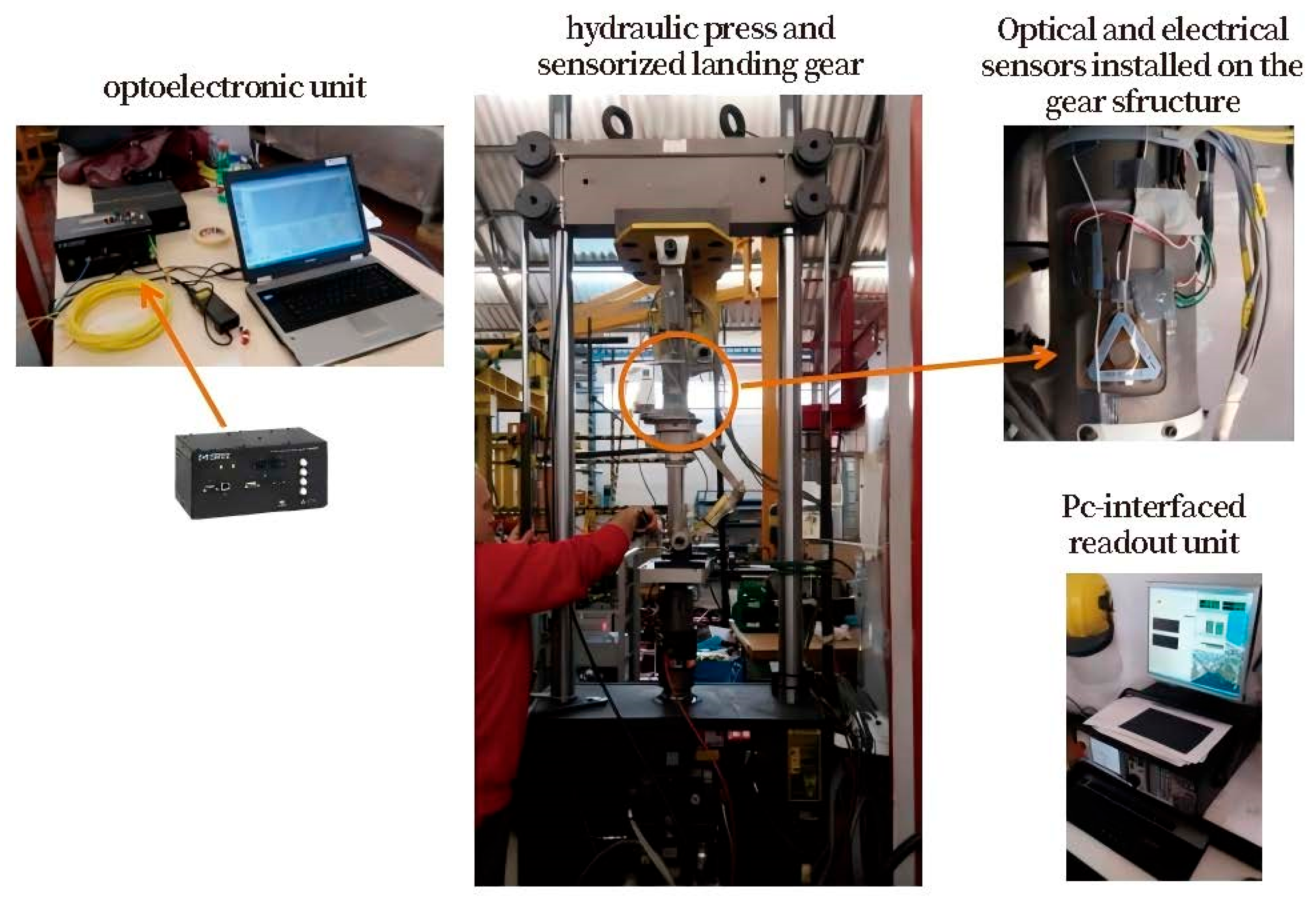 Figure 8 illustrates the experimental setup for aircraft landing gear monitoring based on FBG.