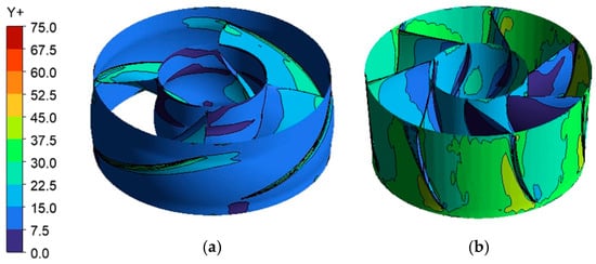 Y+ distribution of (a) Impeller and (b) Guide vanes.