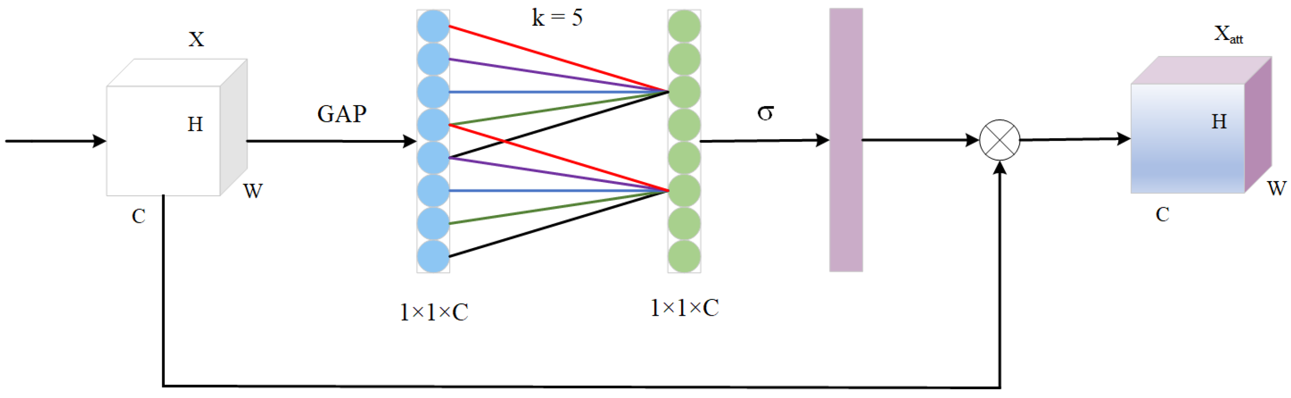 k represents the convolution kernel size, adaptively determined. The notation | · |odd denotes taking the nearest odd integer, maintaining a nonlinear relationship with channel count