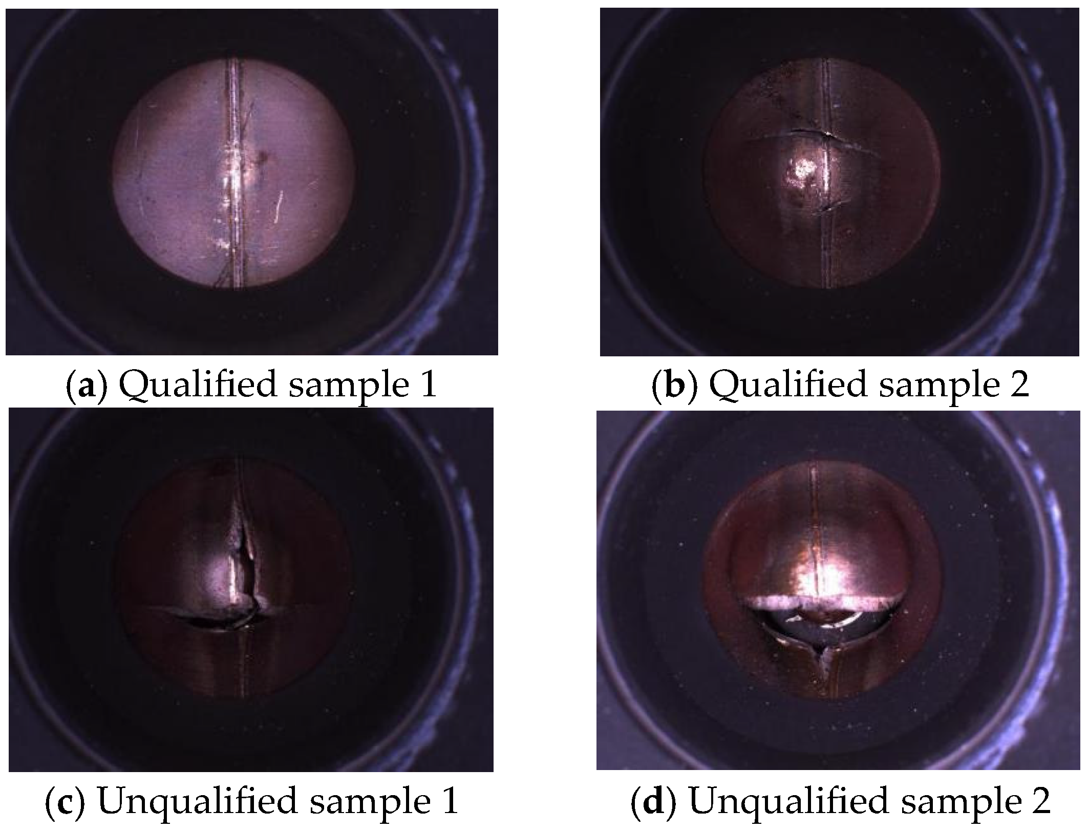 The weld cup rupture dataset was collected from actual production sites, comprising 1000 samples that underwent cup rupture testing. Sample images are shown in