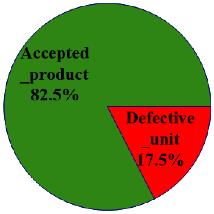 Figure 8, samples without cracks at the weld after cup rupture testing were categorized as qualified (825 samples), while those with cracks at the weld were classified as unqualified (175 samples). On-site quality inspection only classifies products as “Qualified” or “Unqualified” without detailed sub-labels. The dataset contains only binary labels (Accepted_product = 0, Defective_unit = 1) and lacks annotations for attributes like crack length or width. These labels correspond one-to-one with the PLC triggering logic (Products labeled Accepted_product are passed, while those labeled Defective_unit are scrapped). Therefore, a binary classification method is adopted. The dataset was annotated using the LabelImg tool, with two defined classes: Accepted_product and Defective_unit.