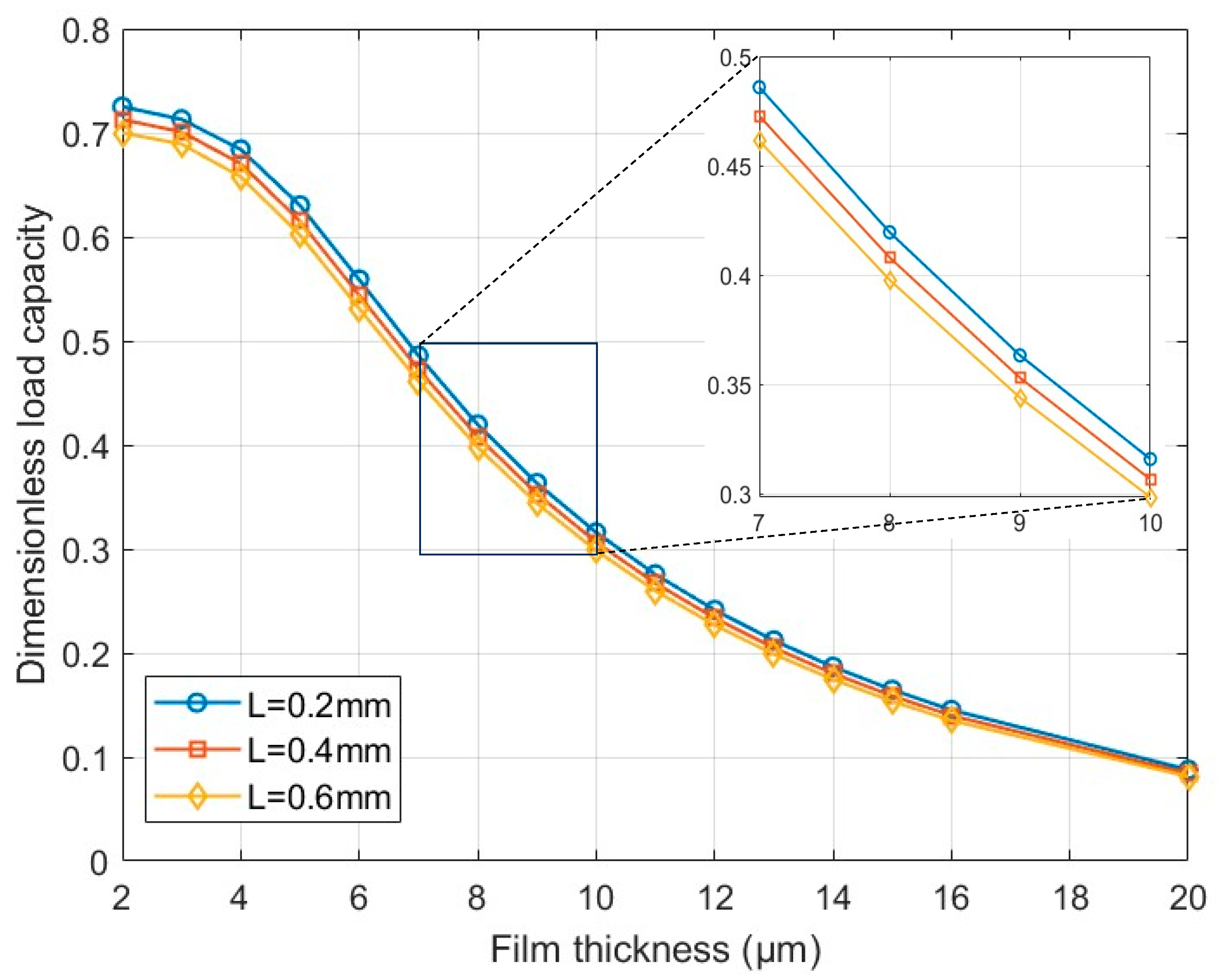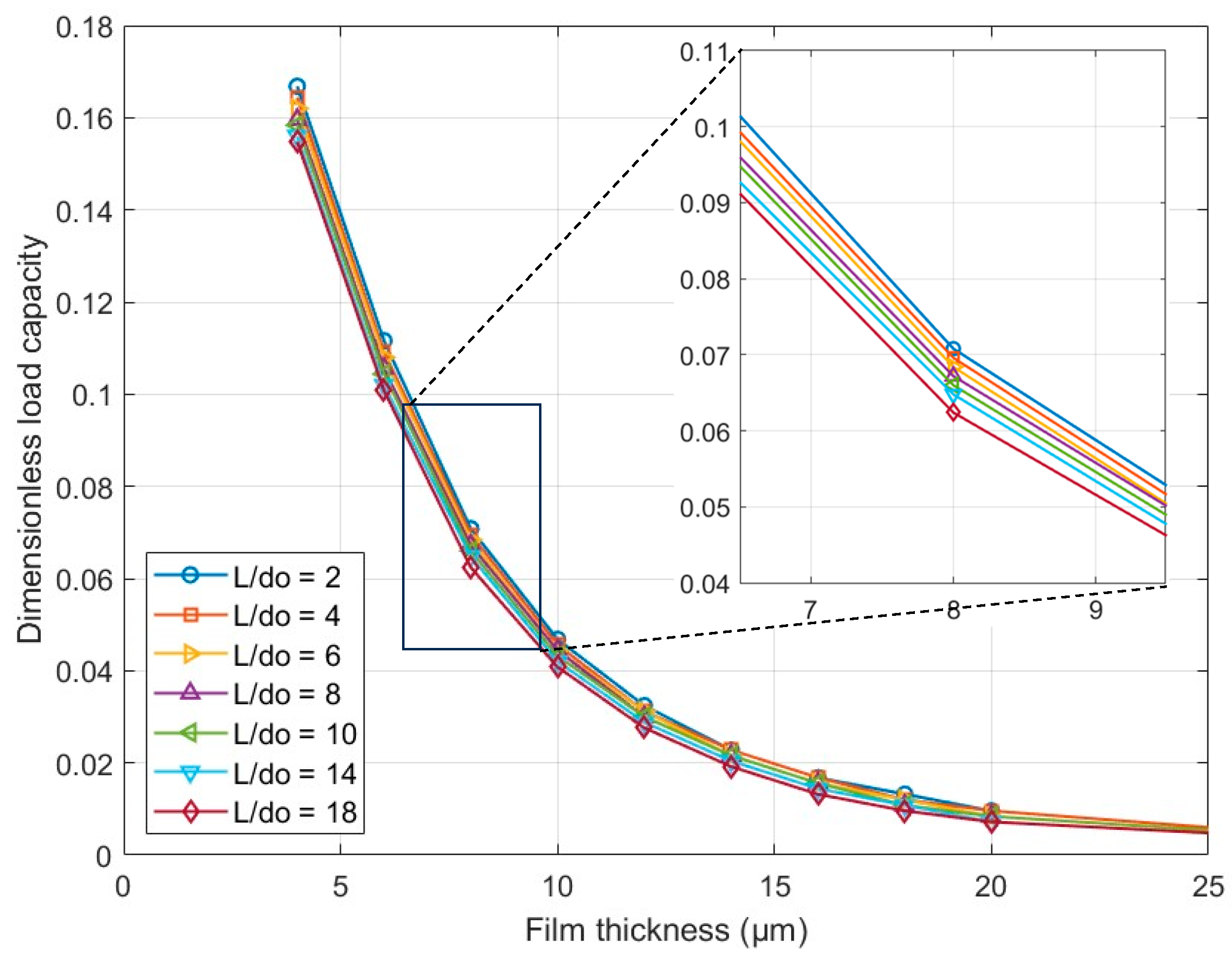| Bearing film thickness, h (µm) | 2–20 at an interval of 1 µm | |