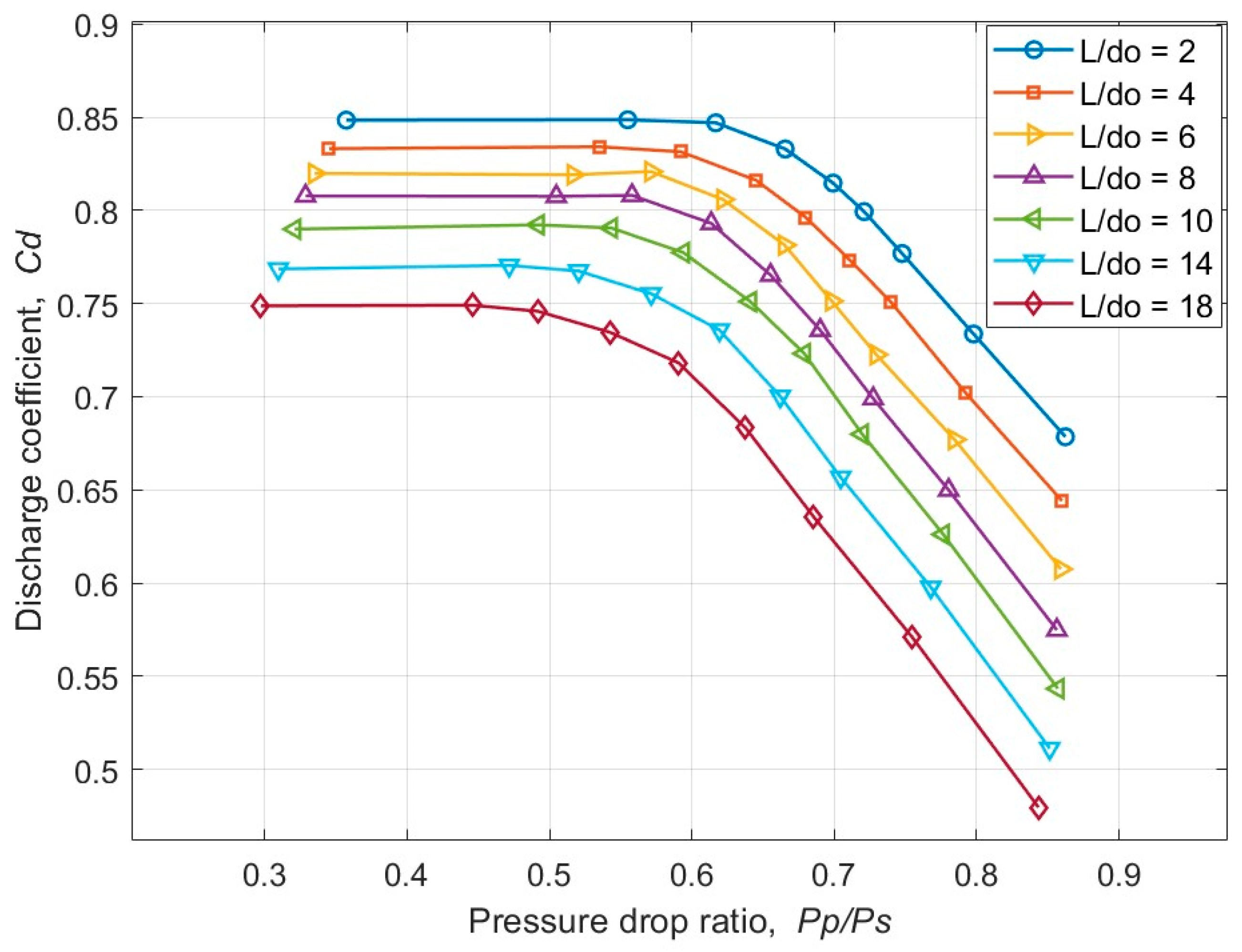 | Orifice length (L)-to-diameter ratio, L/do | 2, 4, 6, 8, 10, 14, 18 |