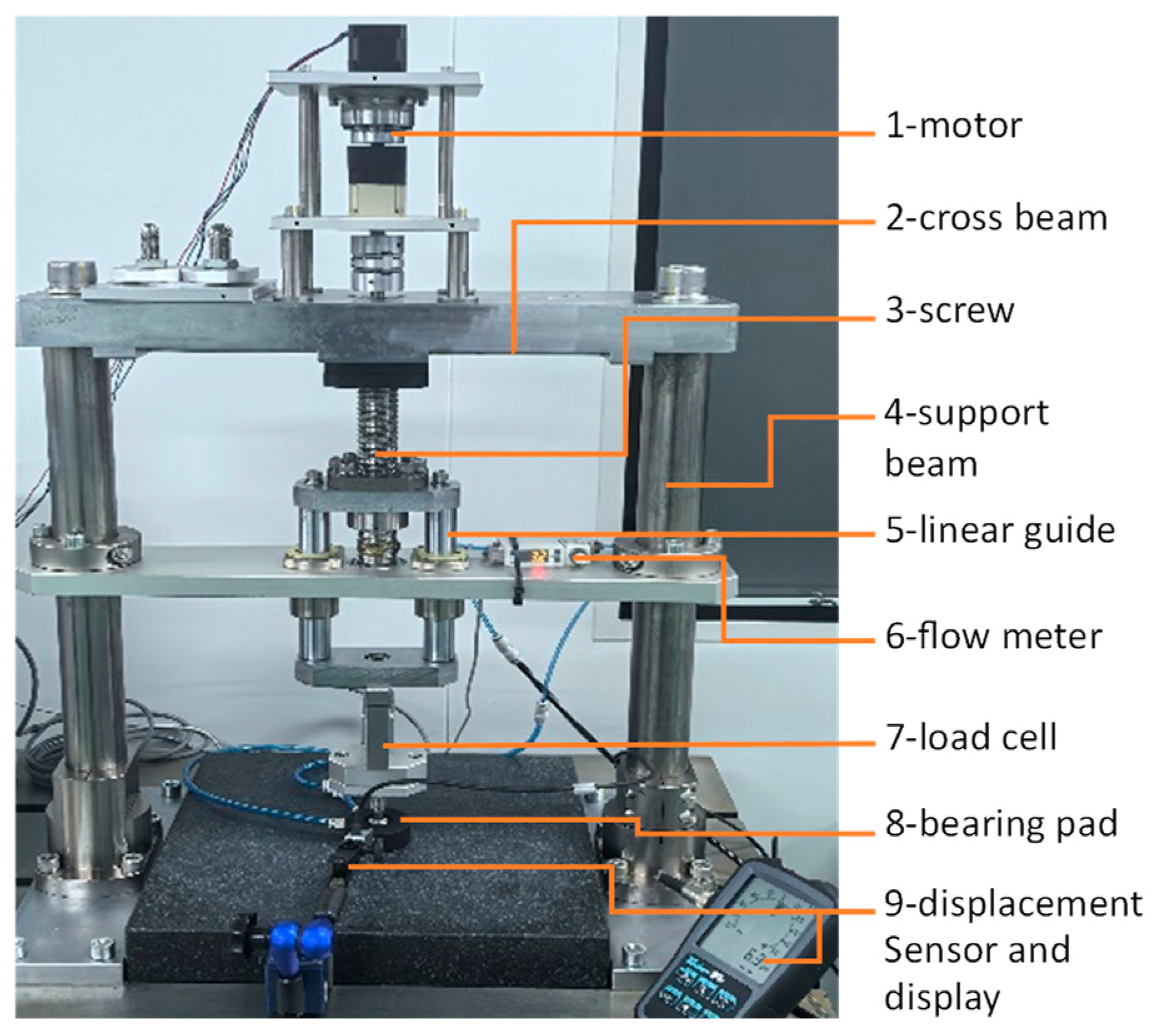 - It was numerically and experimentally demonstrated that micro-hole-restricted air bearings can achieve high load capacity and high stiffness, having the potential for application in more complex air bearing designs and systems.