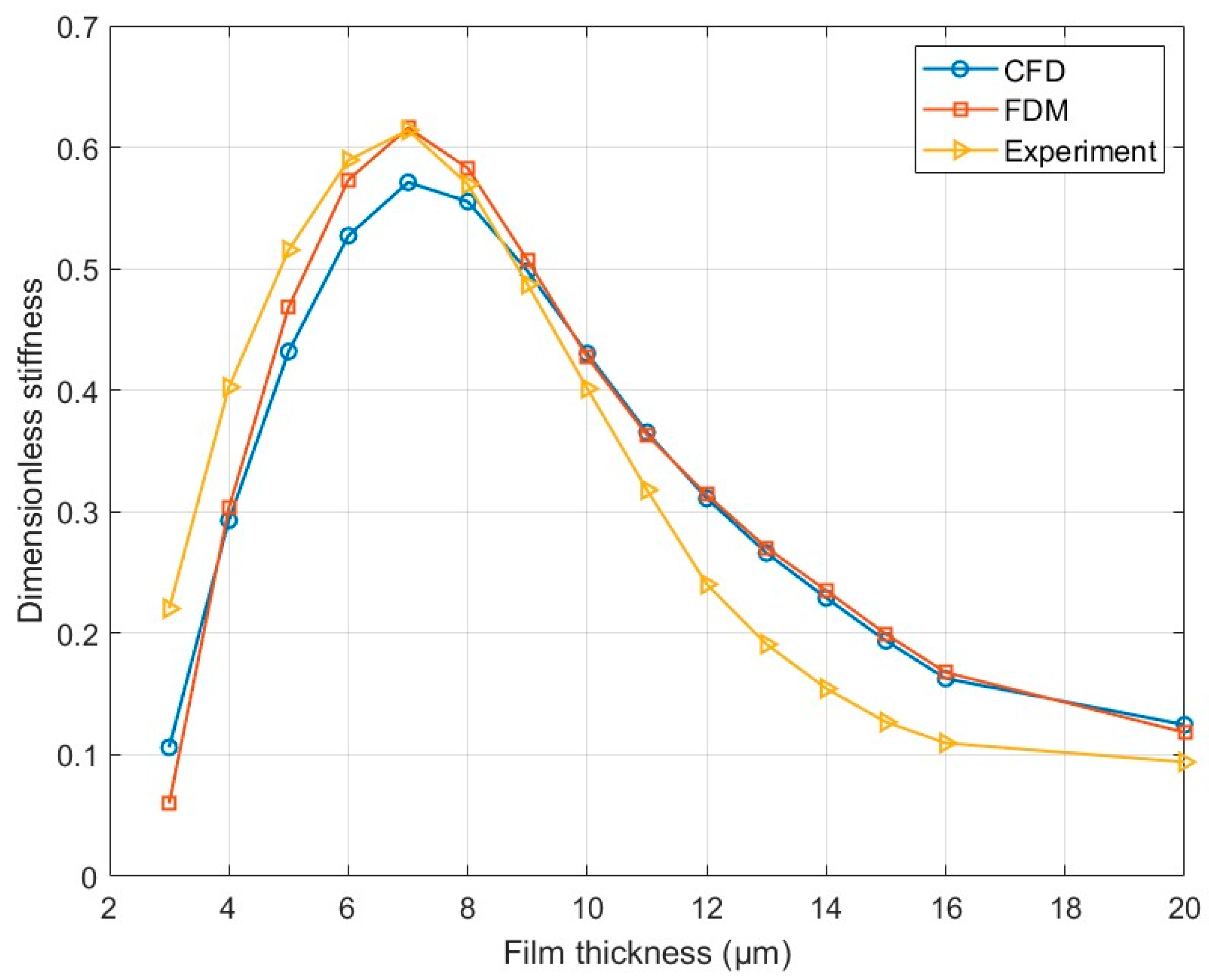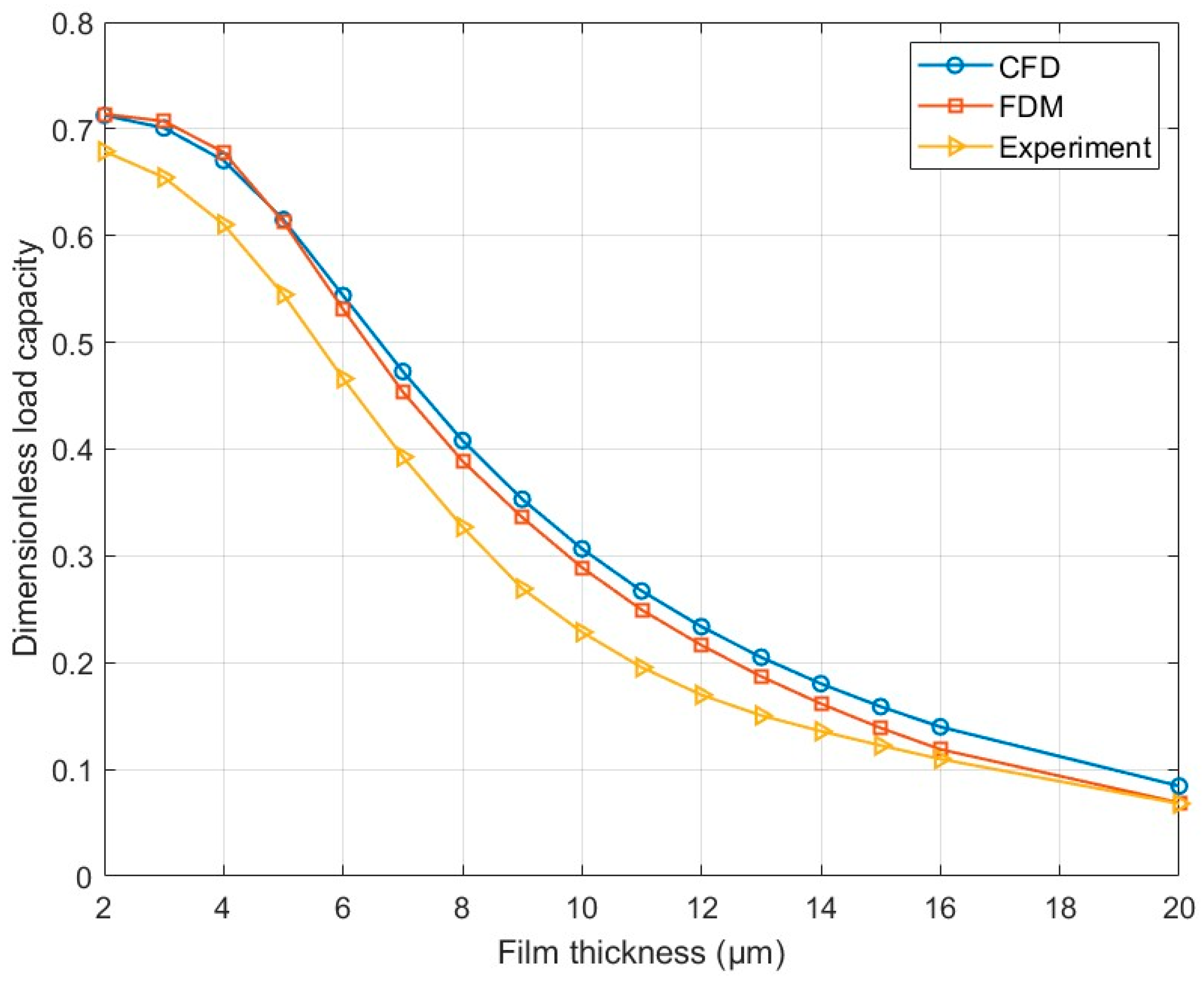 - Repeat steps (2)–(6) for a predefined range of bearing air film thicknesses.