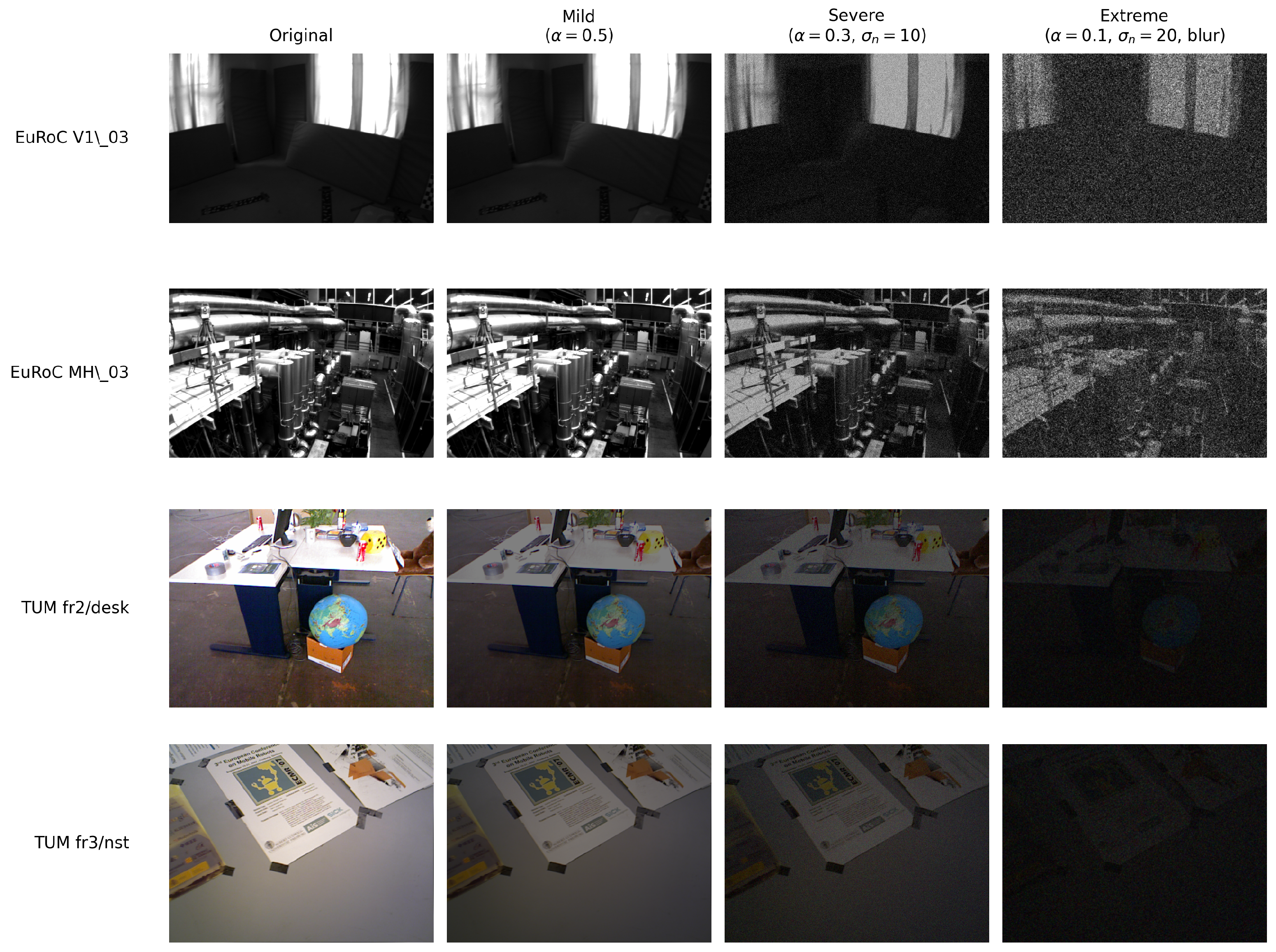 | Enhancement Method | ATE RMSE (m) | Keypoints/Frame | Inlier Ratio |