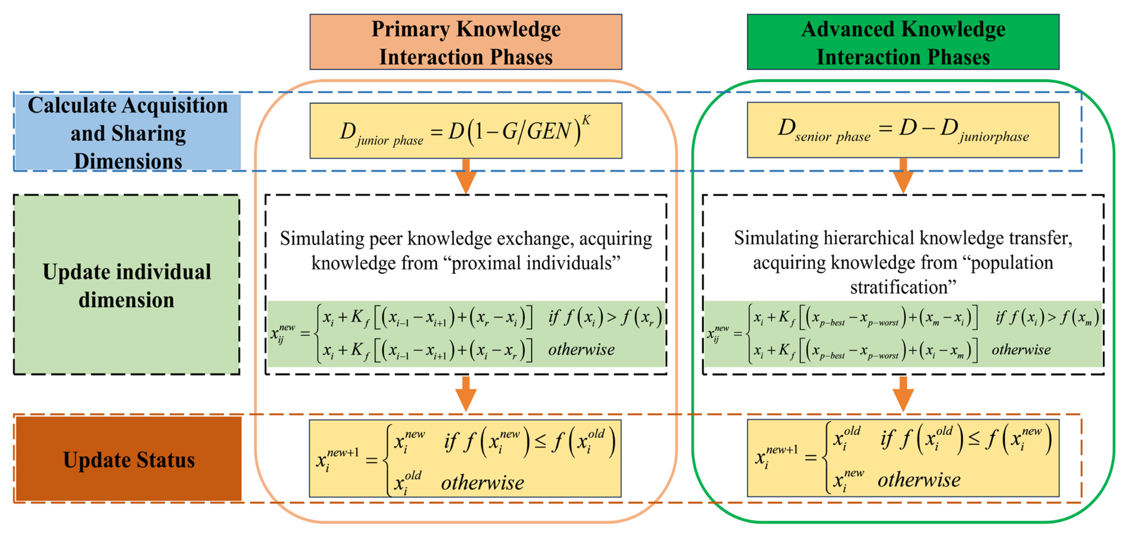 - Jawad, M.A.; Roshdy, H.S.M.; Mohamed, A.W. Enhanced Gaining-Sharing Knowledge-based algorithm. Results Control Optim. 2025, 19, 100542. [Google Scholar] [CrossRef]