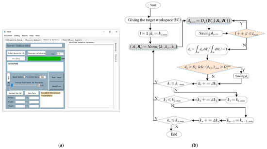 In this equation, W denotes the set of workspace parameters defined in Equation (17), whereas {Ai, Bi} encodes the dimensional data, specifically the relative coordinates of the joint endpoints, as detailed in Equation (8).