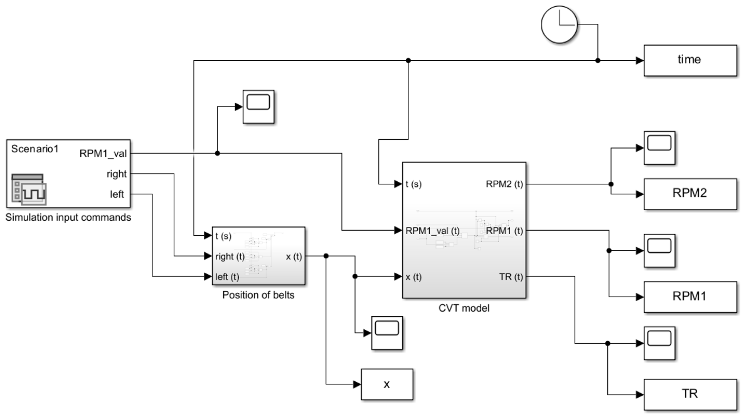 - MathWorks. Continuously Variable Transmission Block. Available online: https://www.mathworks.com/help/autoblks/ref/continuouslyvariabletransmission.html (accessed on 21 January 2026).