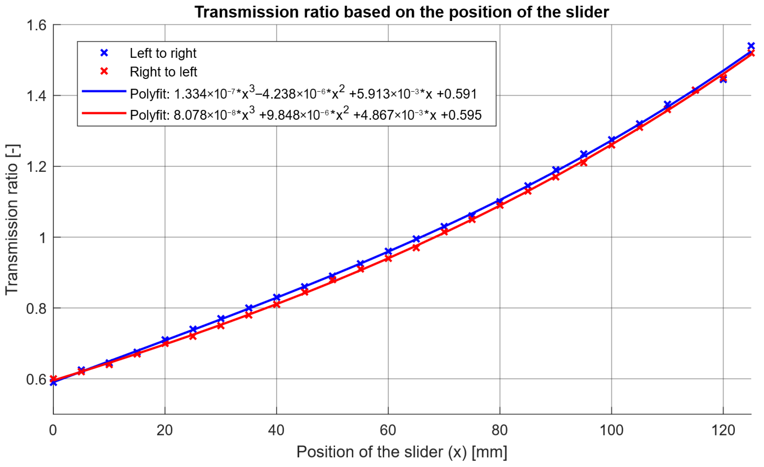 - Negligible parasitic losses: Energy losses attributed to aerodynamic drag and bearing rolling resistance were excluded. At the current rotational velocities, these factors account for less than of the system’s total energy expenditure during transmission change, thus not compromising the transmission-ratio accuracy.