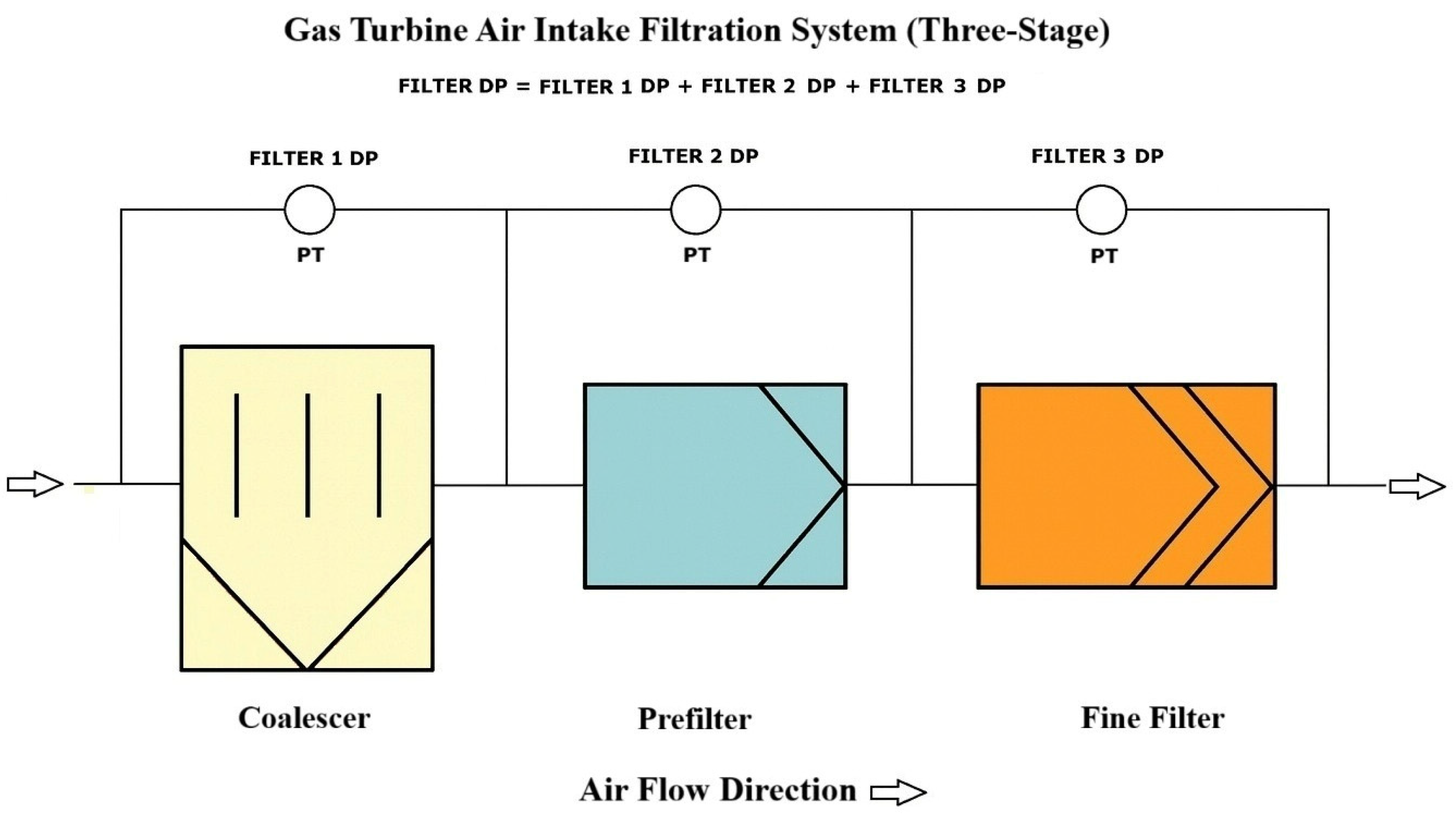 11]. This clearly demonstrates the critical importance of the inlet air filtration system. Filters used in filtration systems employ multiple physical and electrostatic mechanisms simultaneously to remove contaminants from the air. Typically, each filter effectively captures pollutants through the concurrent operation of several filtration mechanisms [
