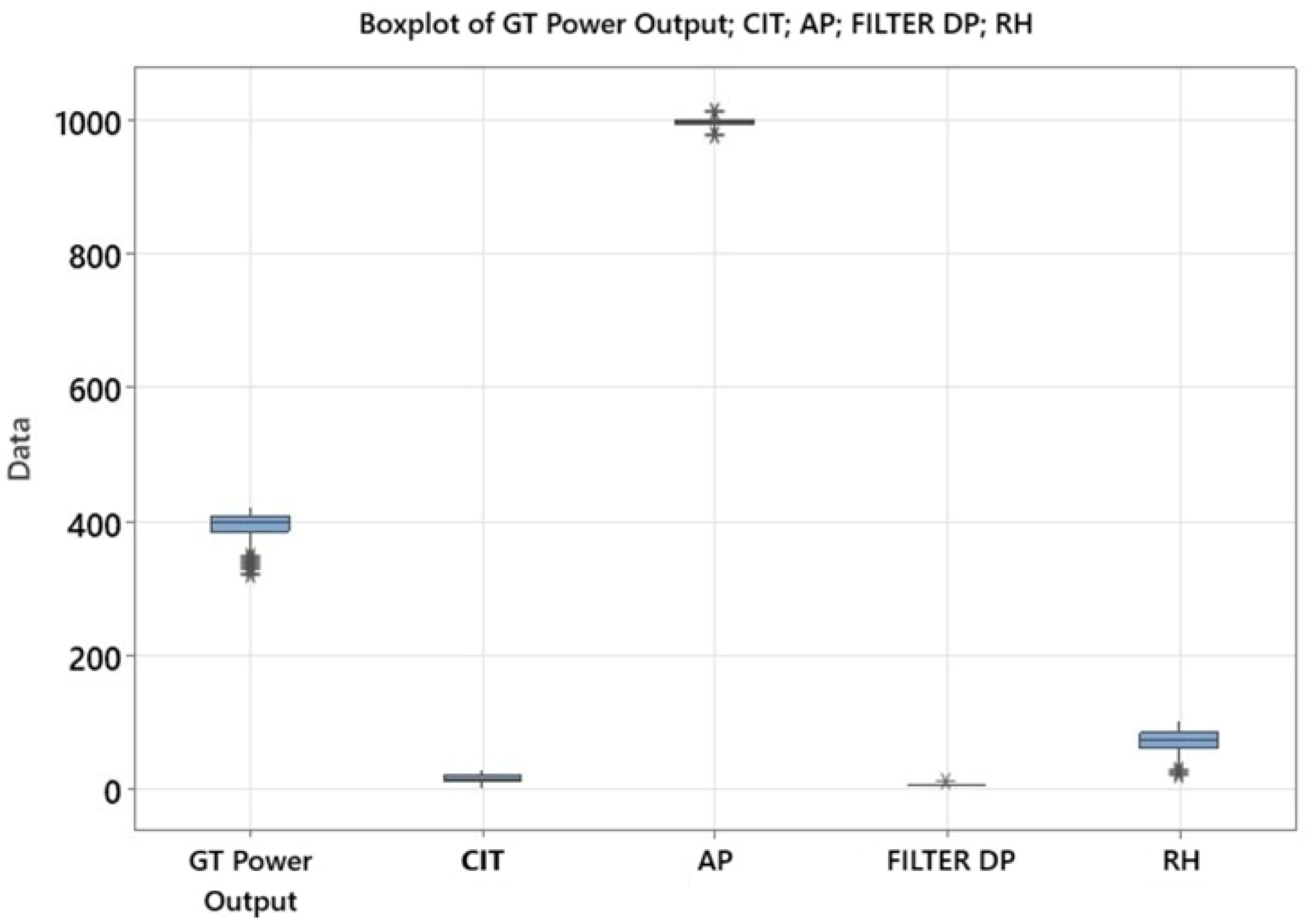 Under real operating conditions, the collected data may contain outliers due to measurement errors, short term operational fluctuations, and environmental effects. In the investigated power plant, the full load power level of the gas turbine varies significantly depending on ambient conditions. For example, on a hot summer day, the full load power is approximately 370 MW, whereas on a cold winter day this value can increase to as high as 410 MW. Therefore, a power output of 370 MW under cold ambient conditions does not represent full load operation; instead, it corresponds to an intermediate load operating regime. Evaluating such operating points together with full load data can adversely affect the physical validity and statistical consistency of the analysis results.