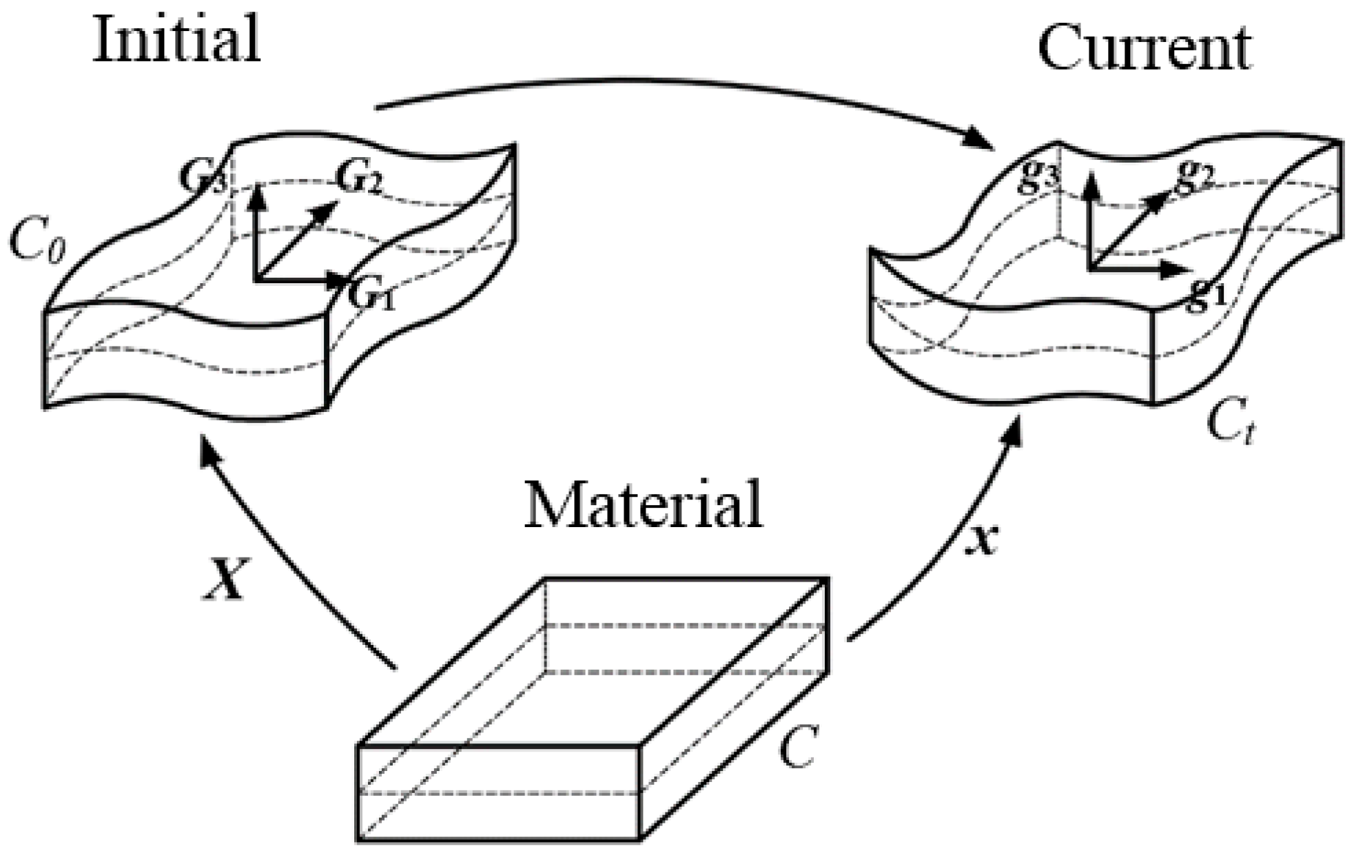 Figure 4, we denote the reference and current configurations as (