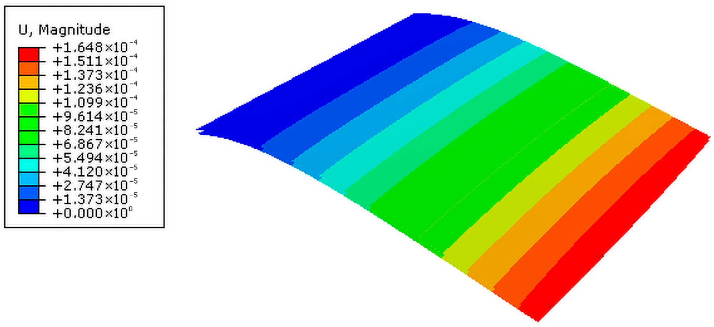 Figure 9b illustrates the deflection shape of the FGM plate together with the corresponding isovalue distributions. The material properties of the plate are summarized in