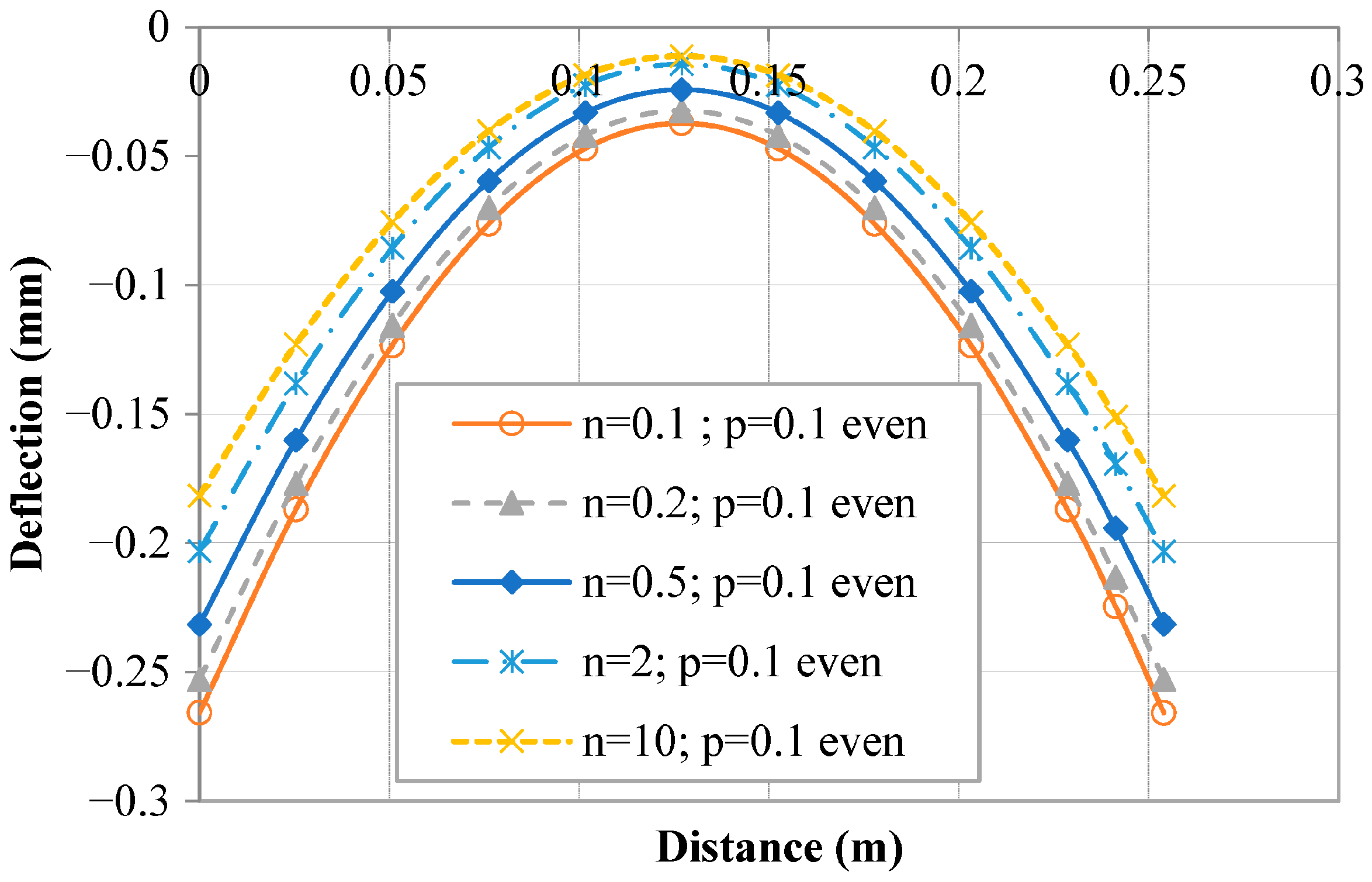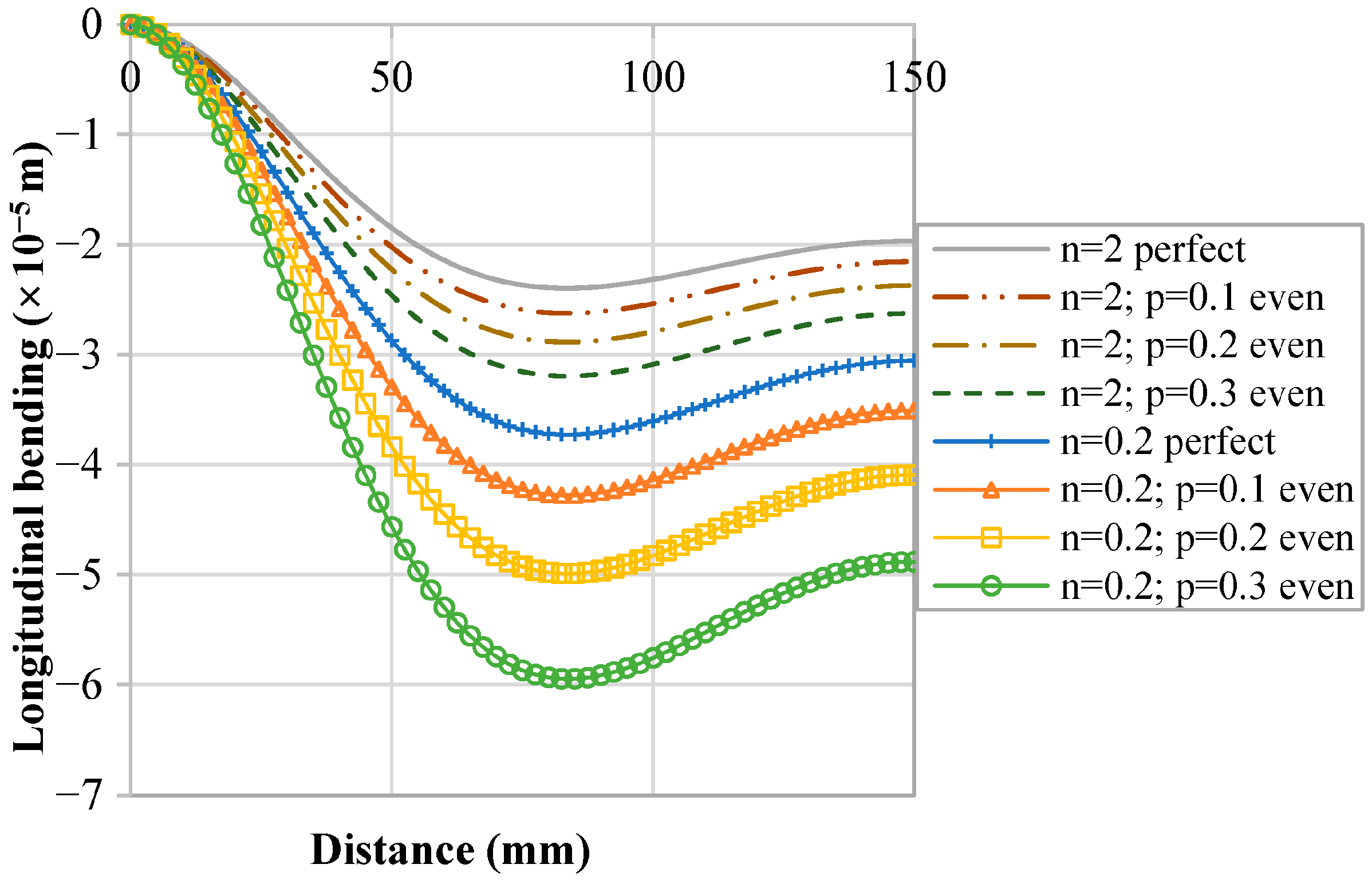 n values. It is clearly seen that the change in the volume fraction of the FGM composition induces marked impacts on the response of the smart structure. Indeed, the longitudinal deflections increase when the power index