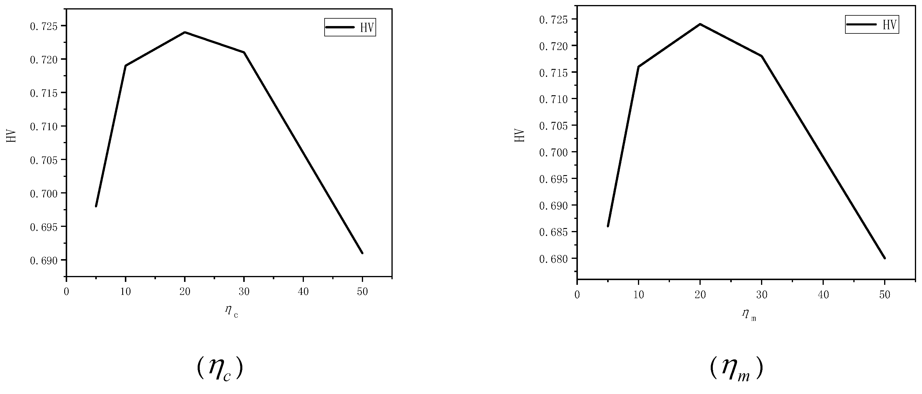Figure 6, the HV value remains optimal and stable when the mutation distribution index