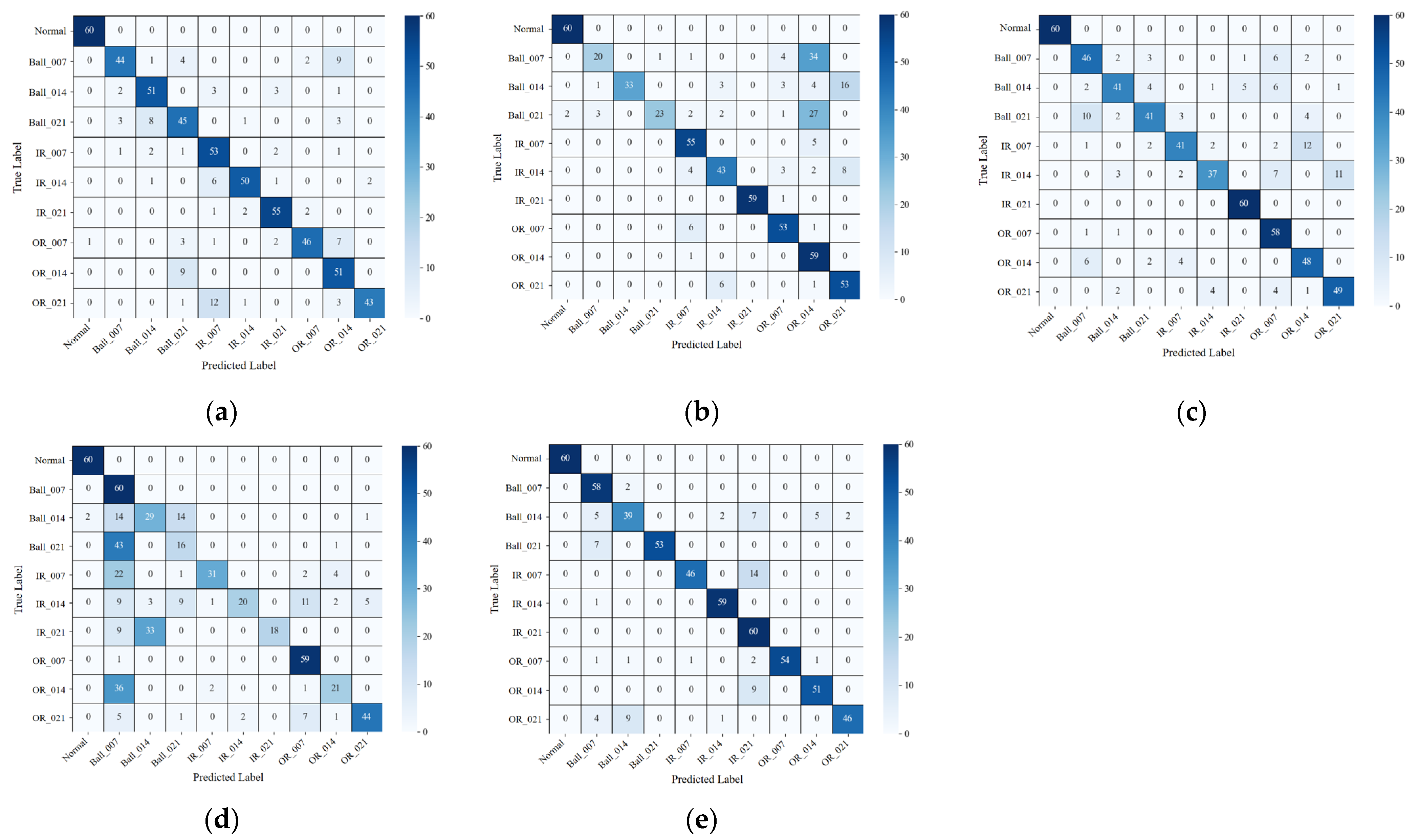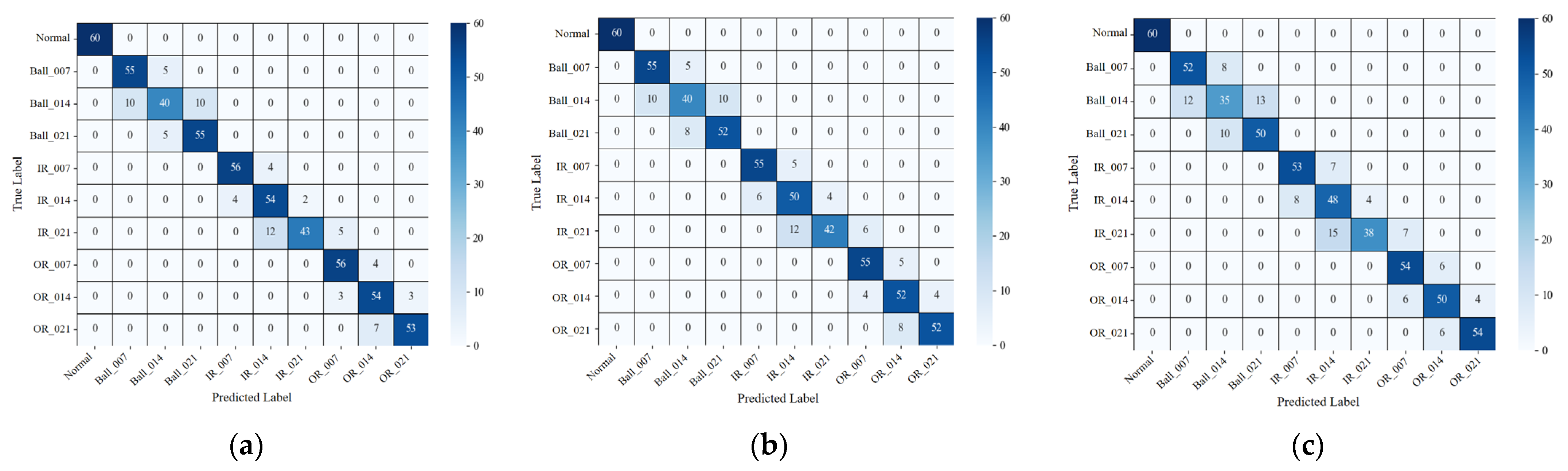 The shapelet lengths are selected based on the characteristic periodicity of bearing fault impulses. Under the sampling rate of 12 kHz and a shaft speed of 1797 RPM, one revolution corresponds to approximately 400 samples. As a representative example, the ball-pass frequency outer race (BPFO) impulse period is about 80 samples. Therefore, the chosen length range spans roughly to the BPFO period. Short shapelets (16–64 samples) capture localized impulsive transients and their immediate decay, whereas longer shapelets (128–256 samples) provide sufficient context to represent repeated impact patterns over multiple BPFO cycles. This multi-scale design avoids committing to a single fault period and improves robustness when the effective impulse spacing varies with operating conditions and noise contamination.