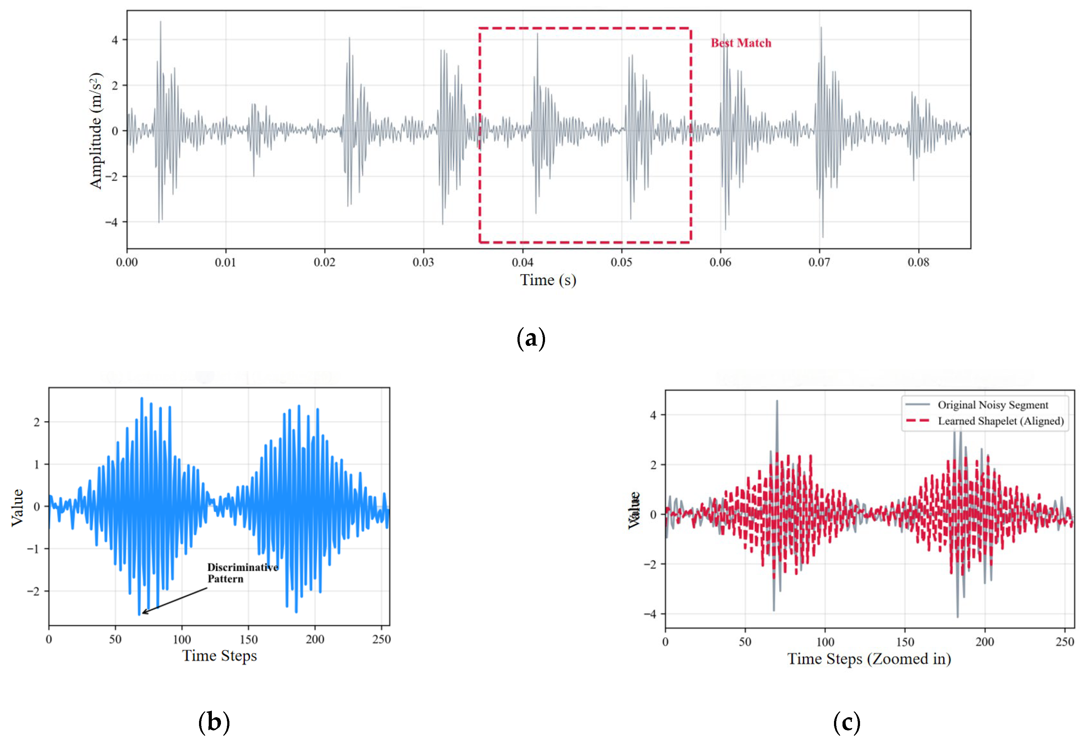 To address the above challenges, this paper proposes a deep learning framework based on shapelets that integrates local pattern matching and multi-scale spatiotemporal modeling to achieve robust bearing fault diagnosis. Unlike treating noise suppression as an independent preprocessing task, the proposed method embeds adaptive shapelet learning into the front-end representation stage, enabling the model to explicitly capture transient patterns that are insensitive to amplitude variations and pulse disturbances and have physical significance. These local representations are further optimized through gated convolution feature extraction and bidirectional temporal modeling to enhance stability under complex industrial noise conditions.