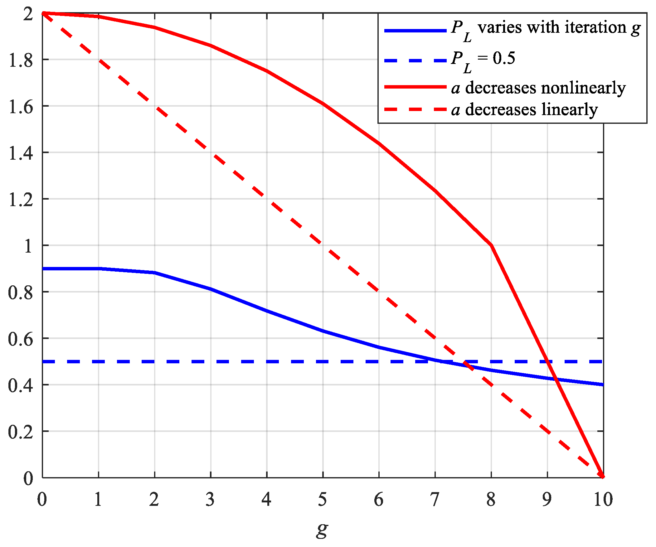 2.3. Nonlinear Adaptive Whale Optimization Algorithm
