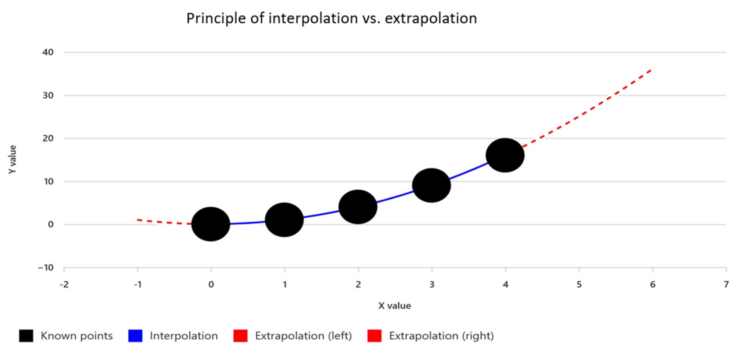 To put it simply, interpolation is a method for estimating new values within the range of available data, while extrapolation is used to estimate values outside that range (