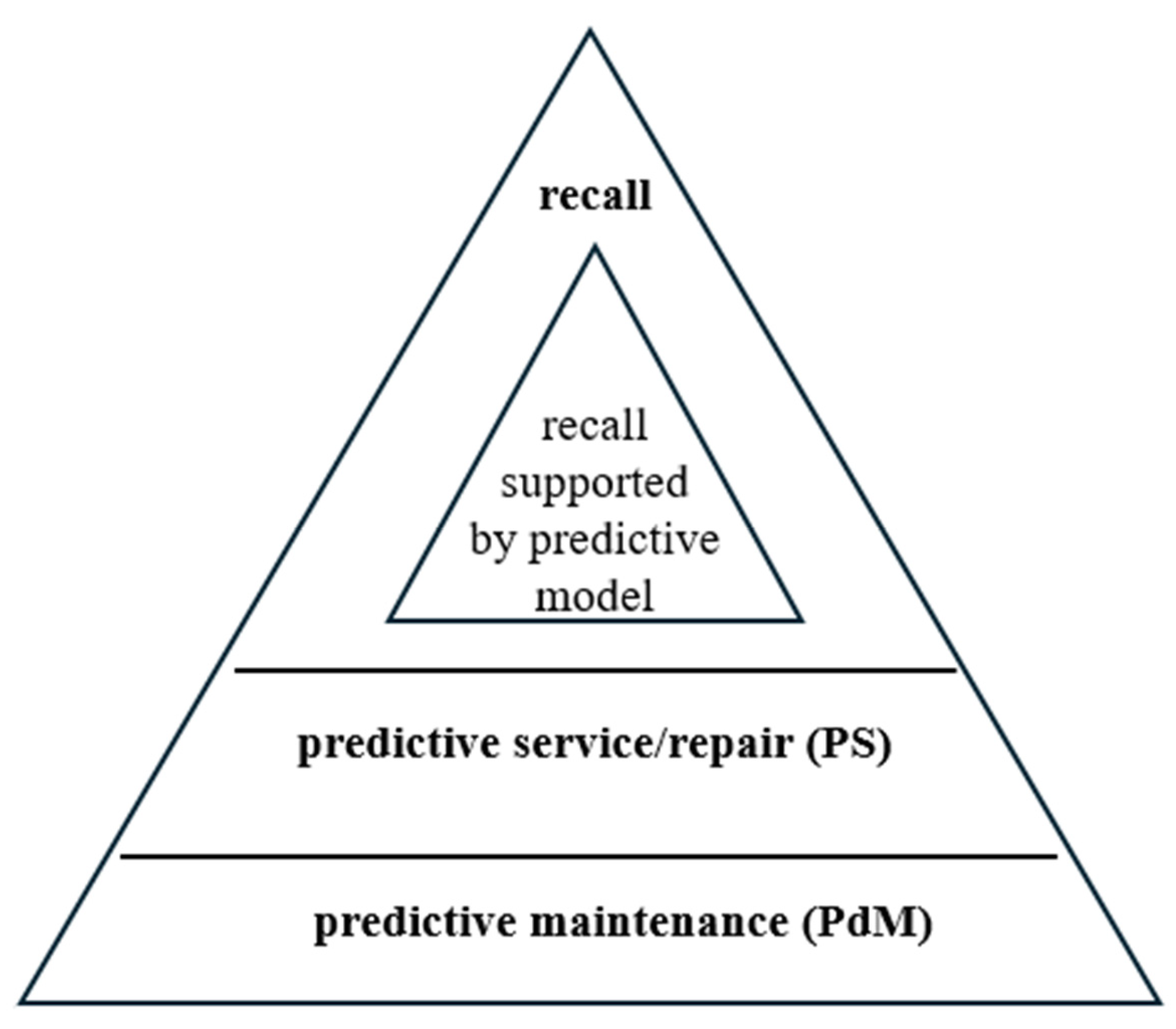 Before starting a possible practical application, it is advisable to clarify some technical-legal concepts: we can discuss predictive maintenance (PdM) for wear parts. A predictive service/repair (PS) can be used in the event of unexpected systematic failures, when we have not yet legally reached the conditions for a recall. It is advisable to treat this as an extension of the vehicle’s own diagnostics. Thus, it can be distinguished from voluntary or mandatory recall. In many cases, voluntary recalls fail for economic reasons when the number of affected specimens cannot be precisely narrowed in a large sample population. AI models used in both PdM and PS can help with this; however, in this case, an AI model was not necessary (