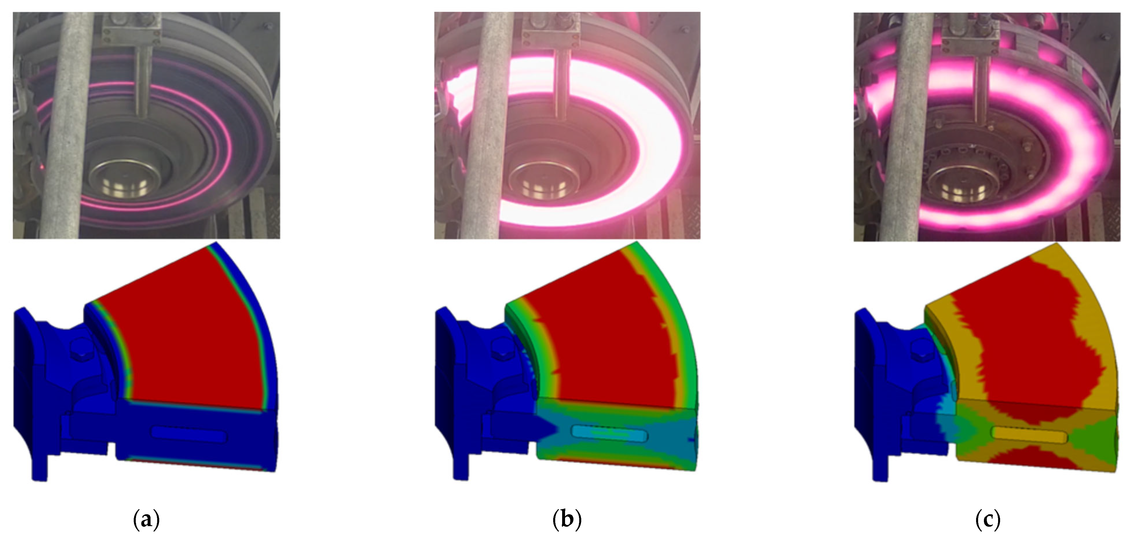 - Yang, L.; Yang, C.; Guo, W.; Xu, P.; Ma, Y.; Li, P. Coupled Thermal-Structural Analysis of an Axle Mounted C/C-SiC Brake Disc for High-Speed Trains. Therm. Sci. Eng. Prog. 2024, 53, 102694. [Google Scholar] [CrossRef]