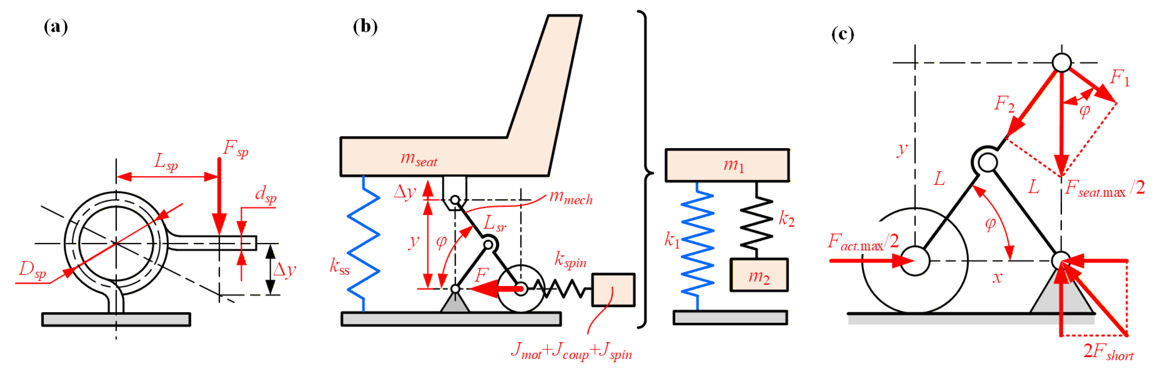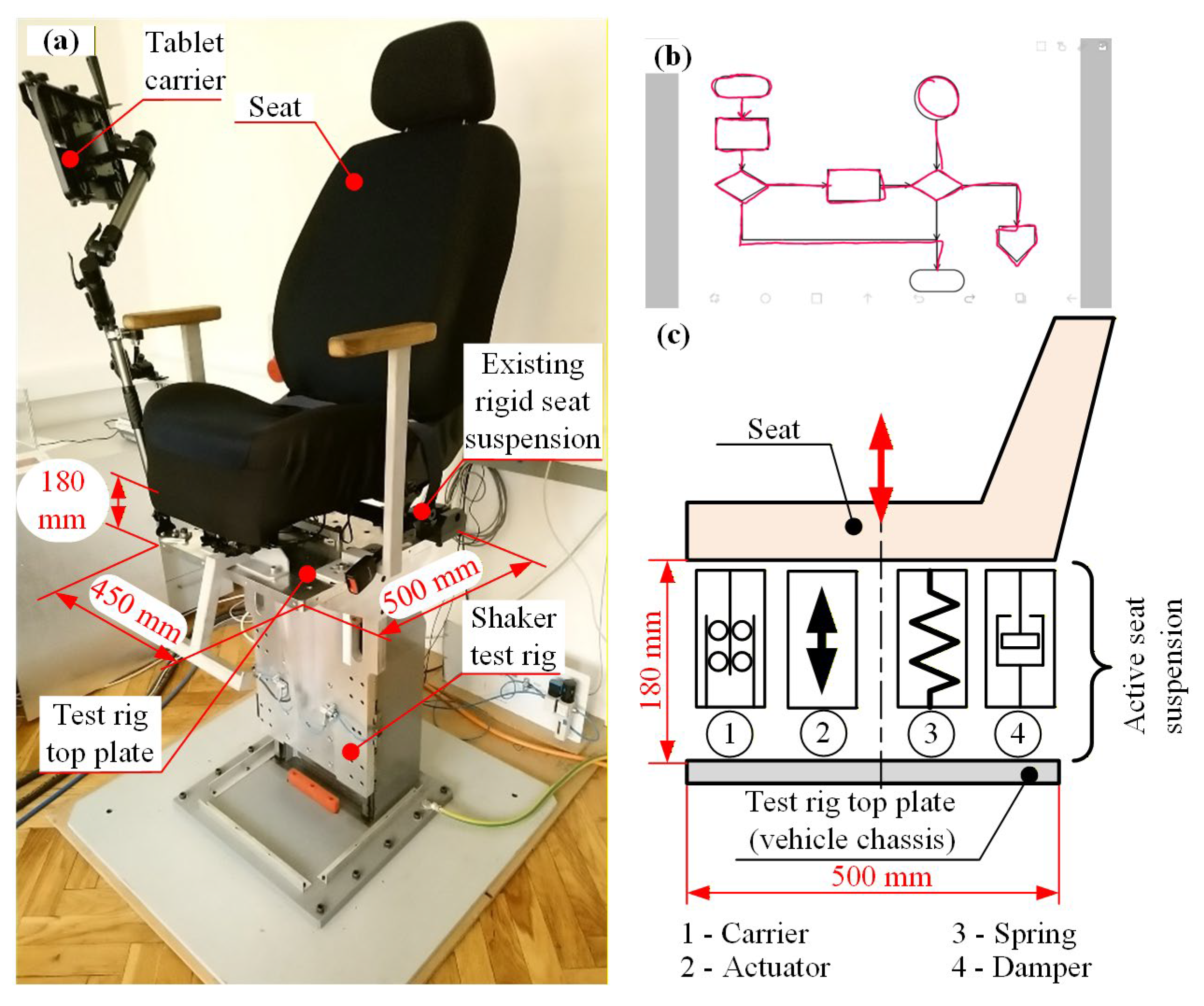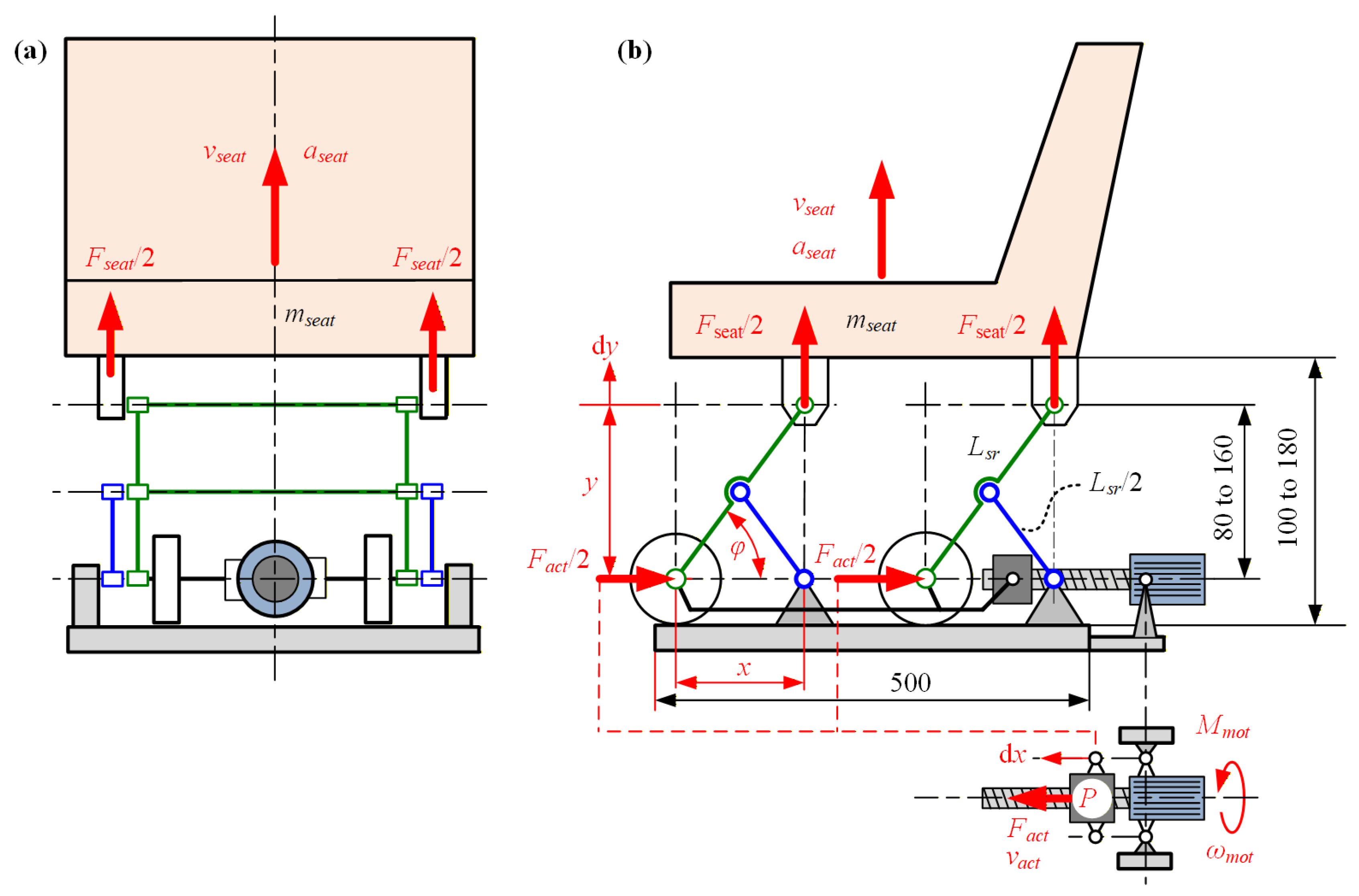 - Desai, R.; Guha, A.; Seshu, P. Modelling and simulation of active and passive seat suspensions for vibration attenuation of vehicle occupants. Int. J. Dyn. Control 2021, 9, 1423–1443. [Google Scholar] [CrossRef]