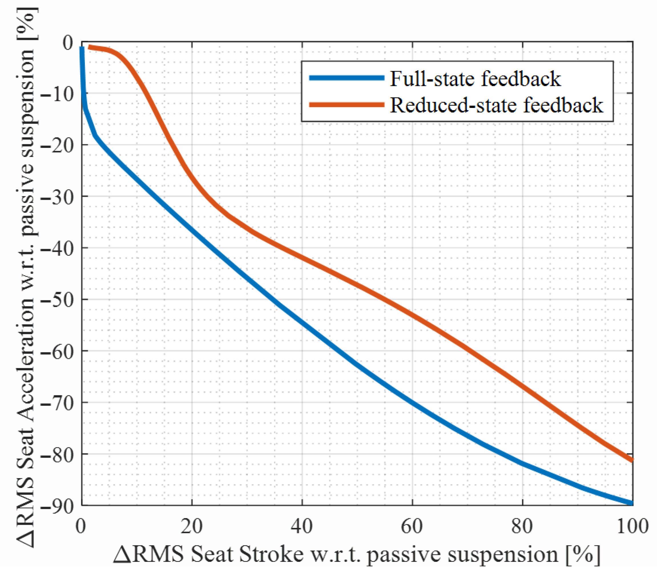 - Colpo, L.R.; Gomes, H.M. Performance of active control in a vehicle seat under random road excitations. Int. J. Dyn. Control 2024, 12, 3274–3288. [Google Scholar] [CrossRef]