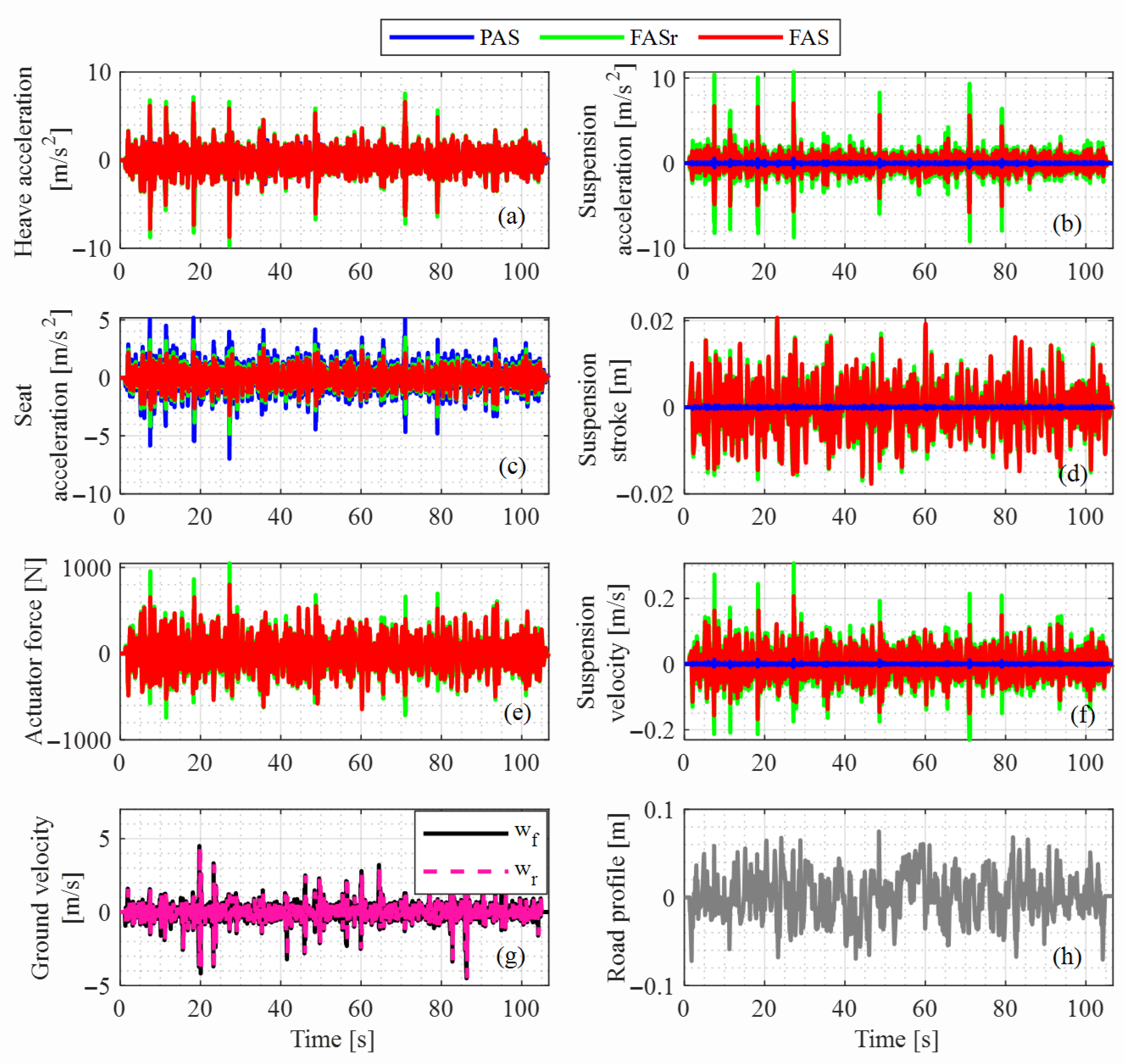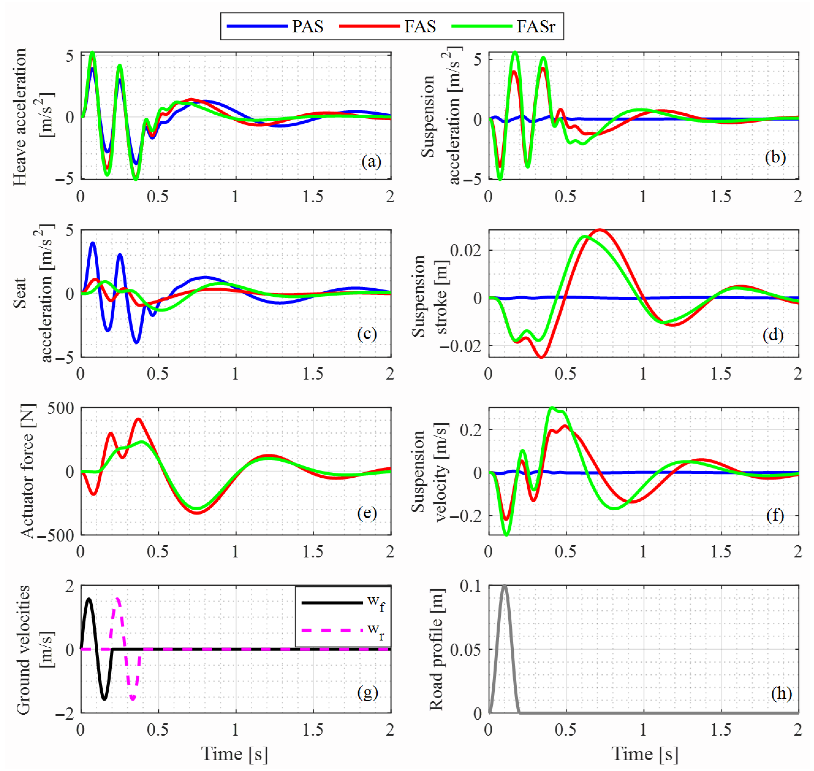 - Cvok, I.; Hrgetić, M.; Hoić, M.; Deur, J.; Hrovat, D.; Eric Tseng, H. Analytical and Experimental Evaluation of Various Active Suspension Alternatives for Superior Ride Comfort and Utilization of Autonomous Vehicles. J. Auton. Veh. Syst. 2021, 1, 011004. [Google Scholar] [CrossRef]