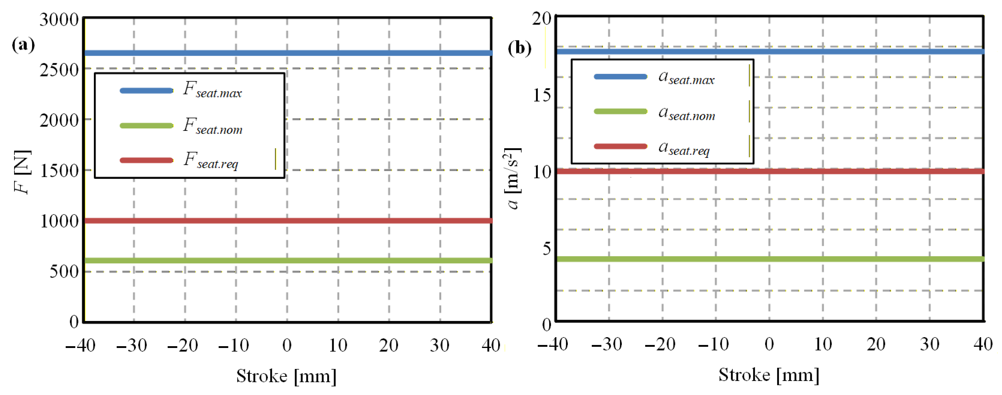 - Papaioannou, G.; Voutsinas, A.; Koulocheris, D. Dynamic performance analysis of vehicle seats with embedded negative stiffness elements. Veh. Syst. Dyn. 2019, 58, 307–337. [Google Scholar] [CrossRef]