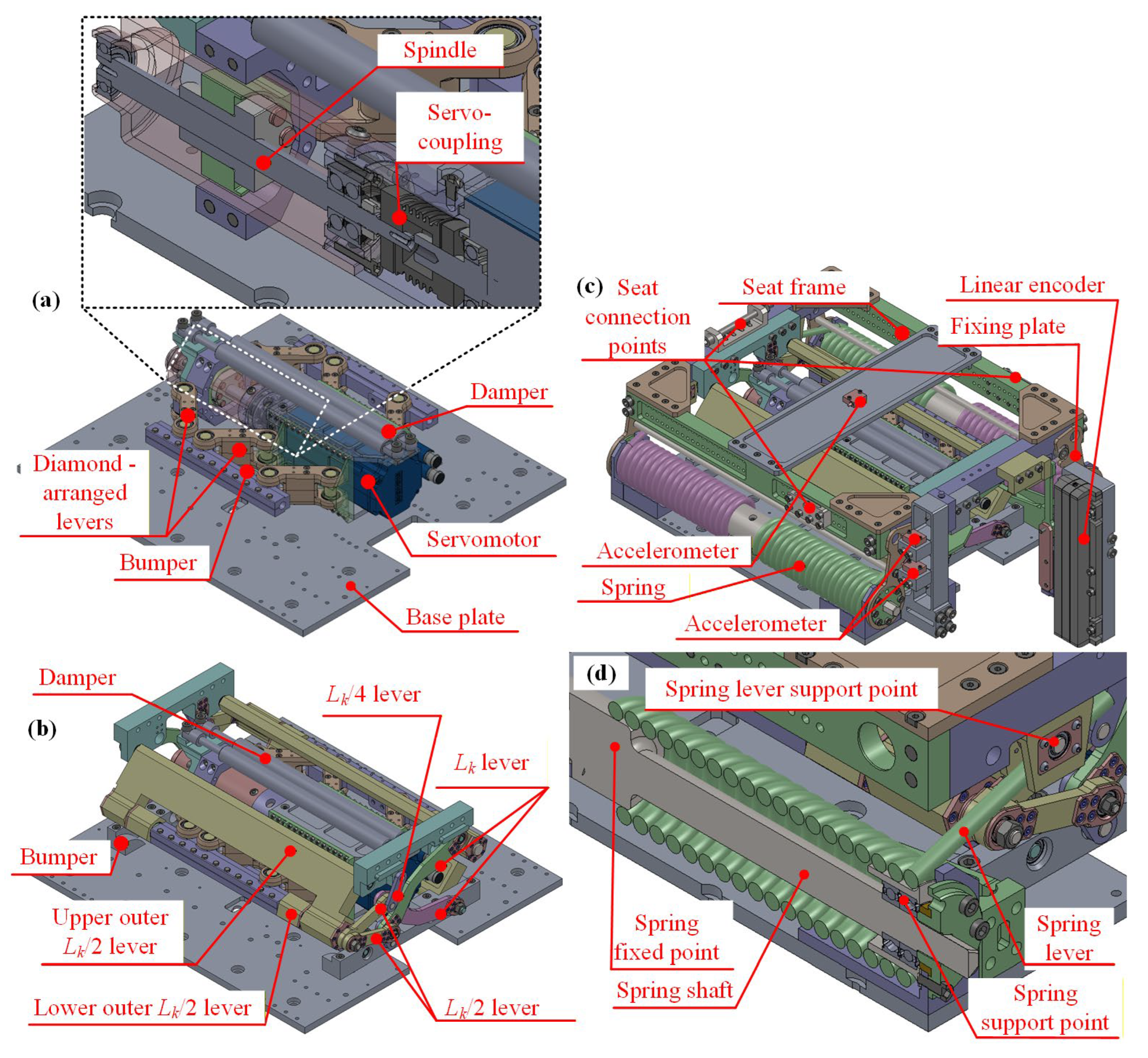 - Hoić, M.; Kranjčević, N.; Birt, D. Design of an active seat suspension based on a Scott-Russell mechanism. In Proceedings of the 2024 20th IEEE/ASME International Conference on Mechatronic and Embedded Systems and Applications (MESA), Genova, Italy, 2–4 September 2024; pp. 1–7. [Google Scholar]