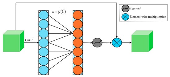 As shown in Figure 2, the ECA module first applies Global Average Pooling (GAP) to the input feature map. It then learns interdependencies among channels via a one-dimensional convolution operation, followed by a Sigmoid function to generate the channel attention map. Finally, the output of the ECA module is obtained by performing element-wise multiplication between this channel attention map and the input feature map of the module. As shown in Figure 2, the ECA module first applies Global Average Pooling (GAP) to the input feature map. It then learns interdependencies among channels via a one-dimensional convolution operation, followed by a Sigmoid function to generate the channel attention map. Finally, the output of the ECA module is obtained by performing element-wise multiplication between this channel attention map and the input feature map of the module.
