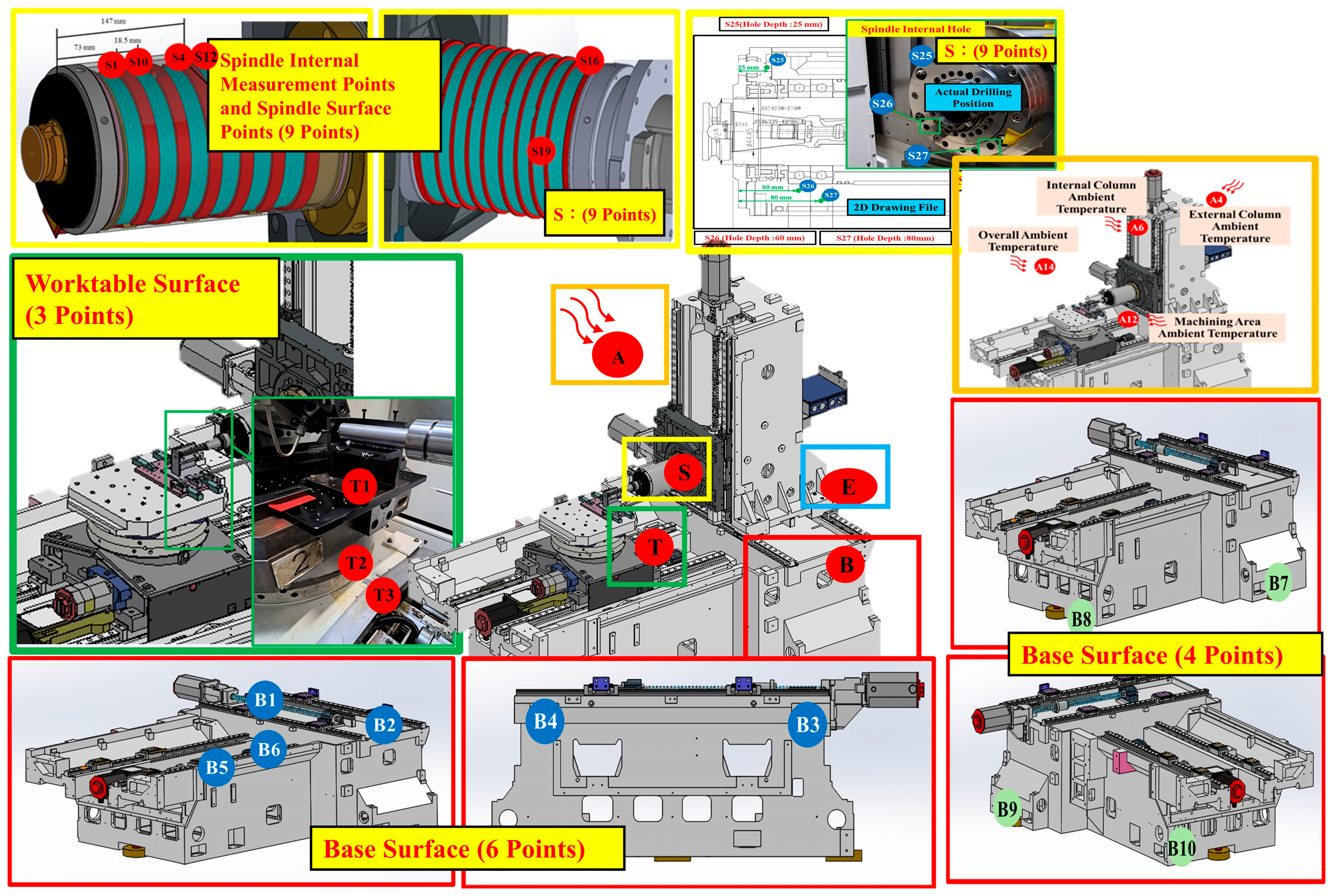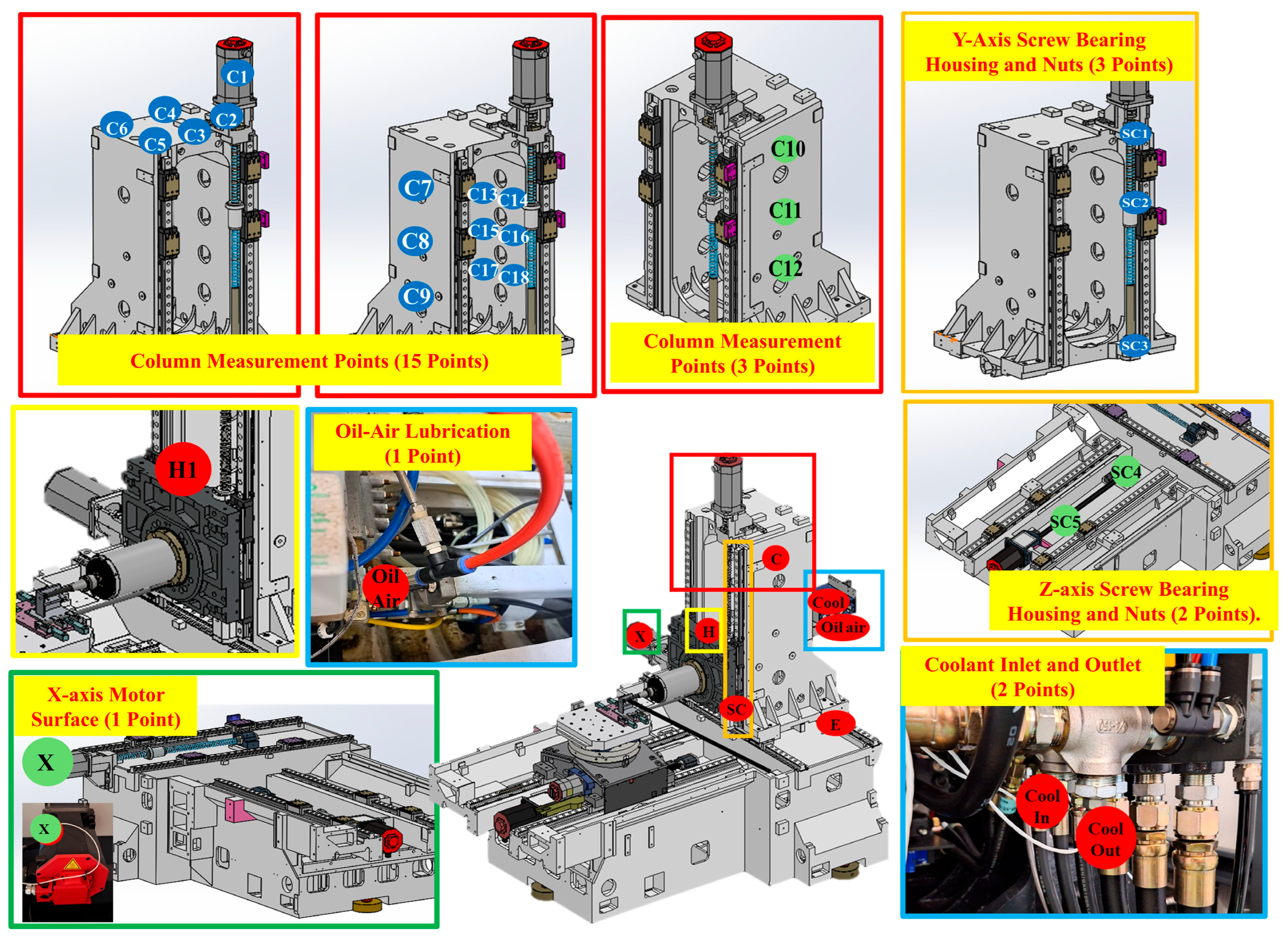 2.1.1. Measurement Equipment and Methods for Thermal Rise and Deformation Experiments on Horizontal Machining Centers