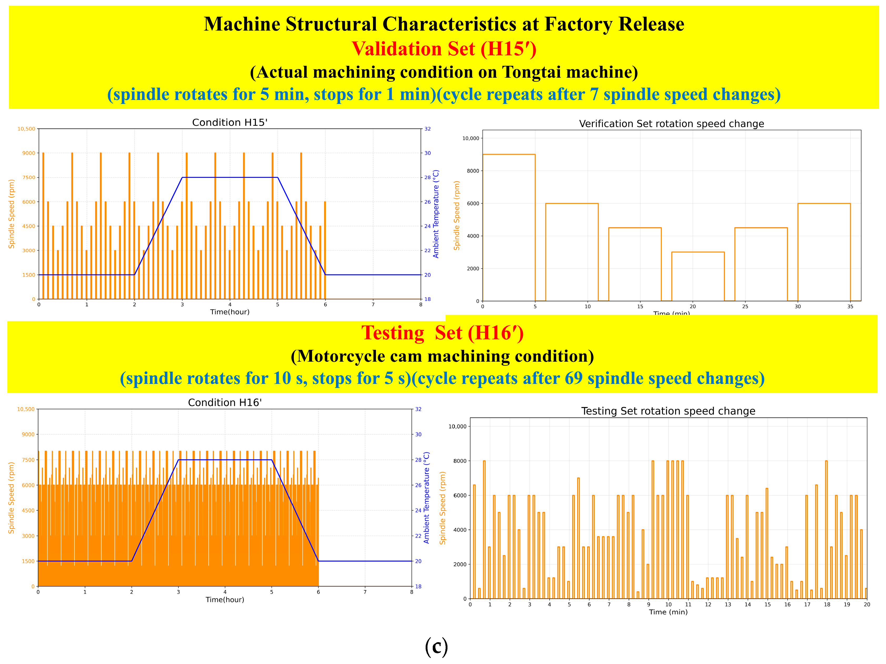 - C3 combined typical testing for operating conditions with variations in spindle speed at low/medium/high temperatures under constant and varying ambient temperatures, serving as a benchmark for evaluating the model’s generalizability under different thermal behaviors. This configuration supports cross-condition adaptability and provides a foundational representation for models subsequently trained under C4–C6.