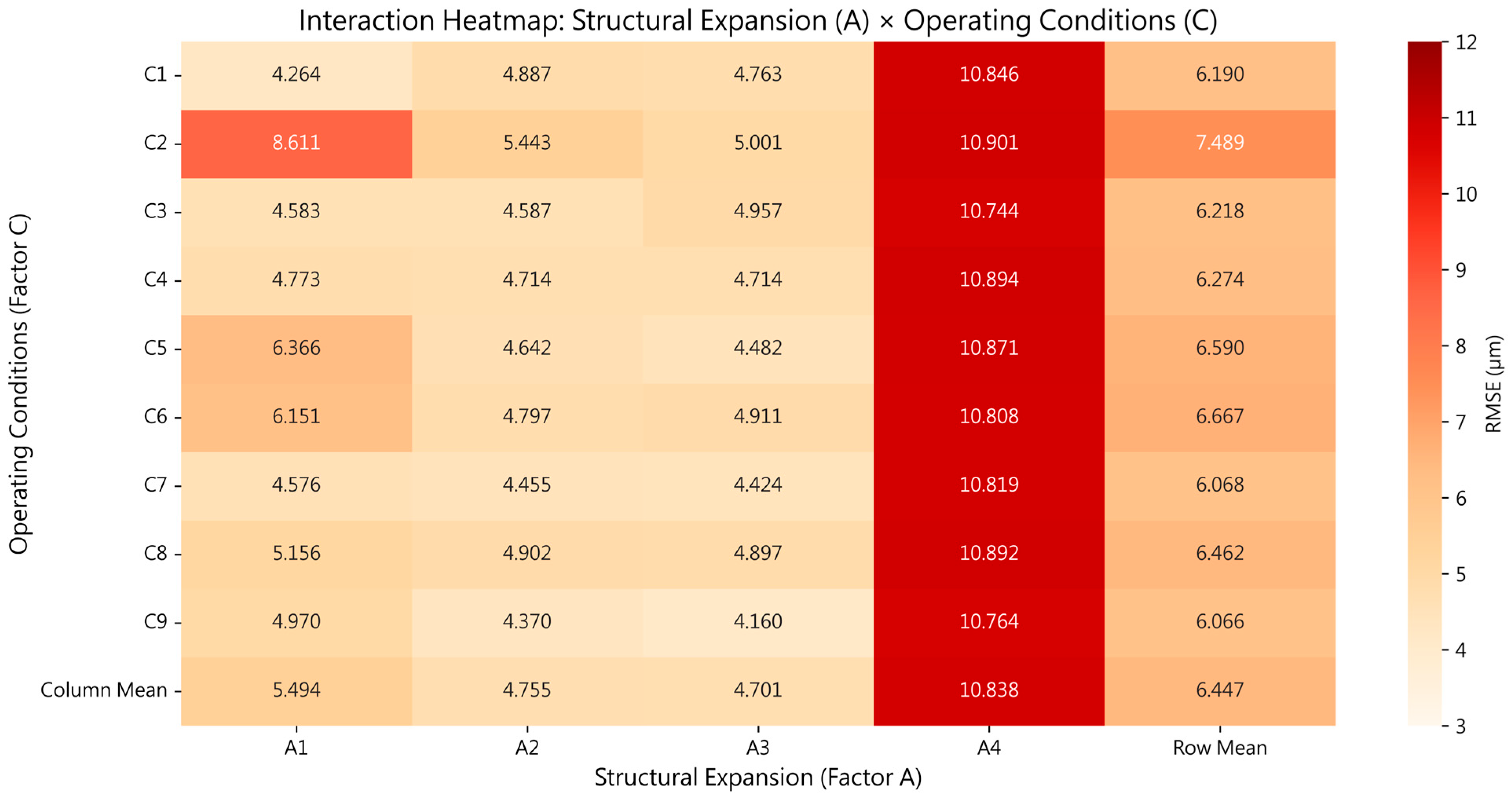 | Factor C Level | Average RMSE (µm) |