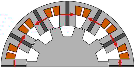 - Zhu, Z.Q.; Liu, Y. Analysis of Air-Gap Field Modulation and Magnetic Gearing Effect in Fractional-Slot Concentrated-Winding Permanent-Magnet Synchronous Machines. IEEE Trans. Ind. Electron. 2018, 65, 3688–3698. [Google Scholar] [CrossRef]