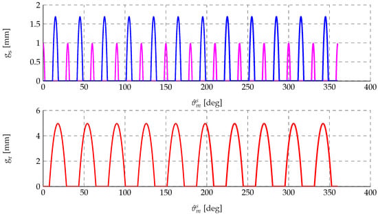 Finally, the stator and rotor air-gap distributions when a rotor tooth is aligned with the reference stator tooth are shown in Figure 7.
